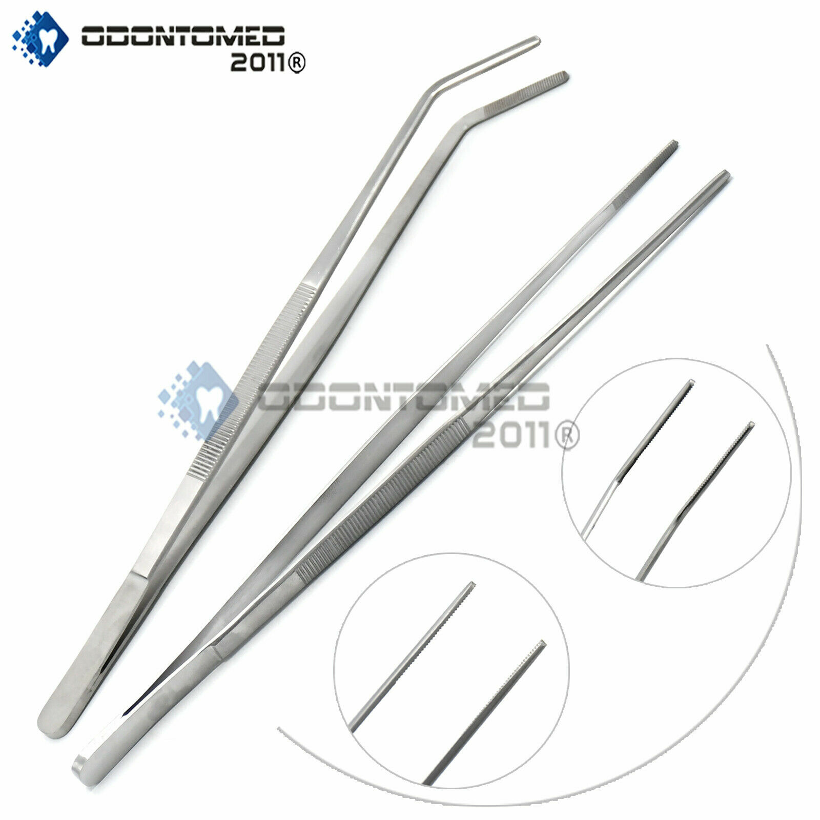Set Of 2 Pcs Handy 12'' Long Instrument Forceps Straight Curved Tweezers