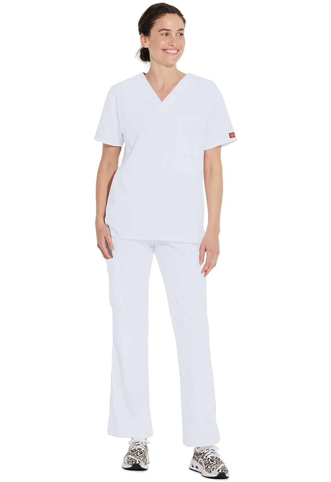 Dickies Scrubs 83706 V Neck Unisex Scrub Top Dickies EDS WHWZ White Free Ship