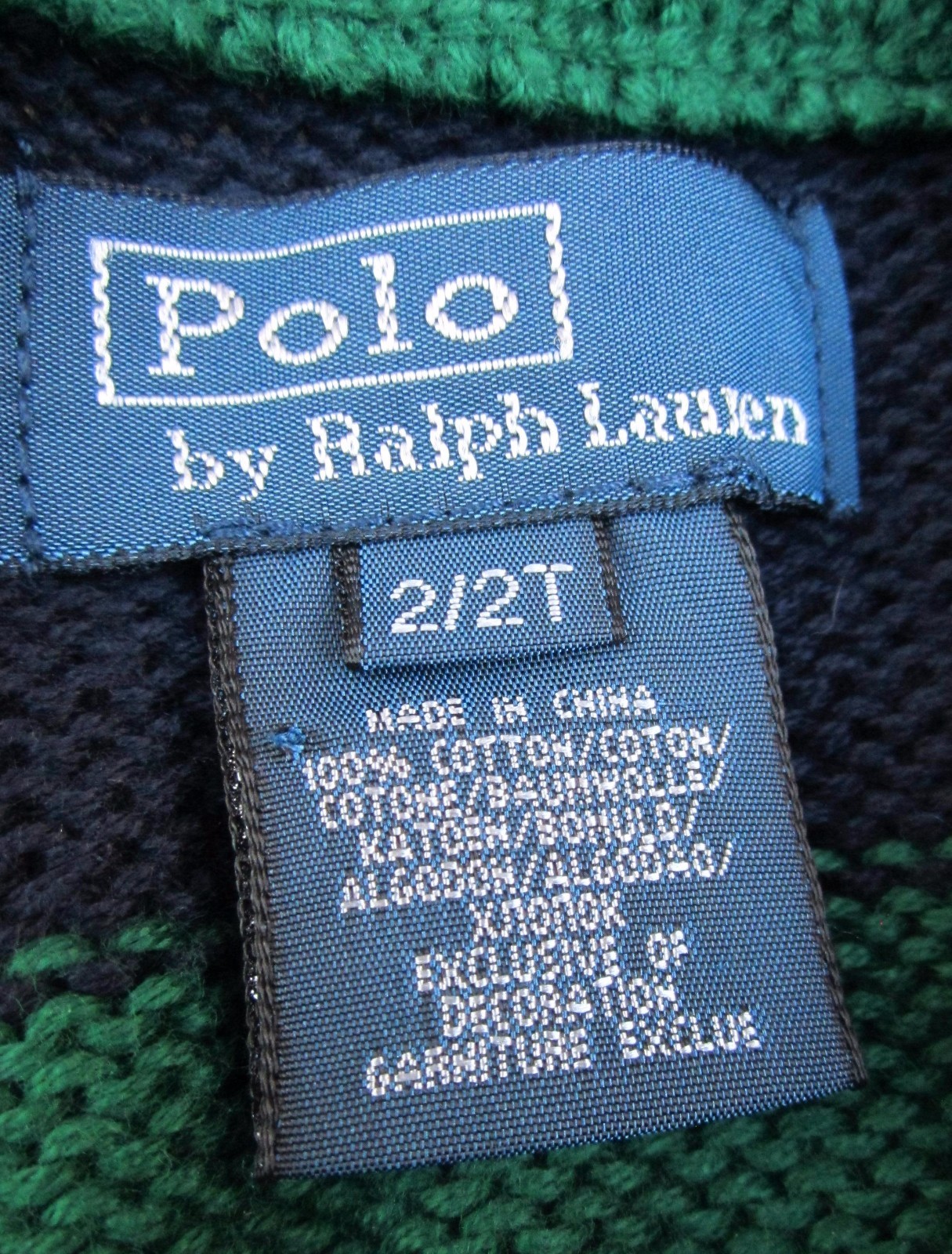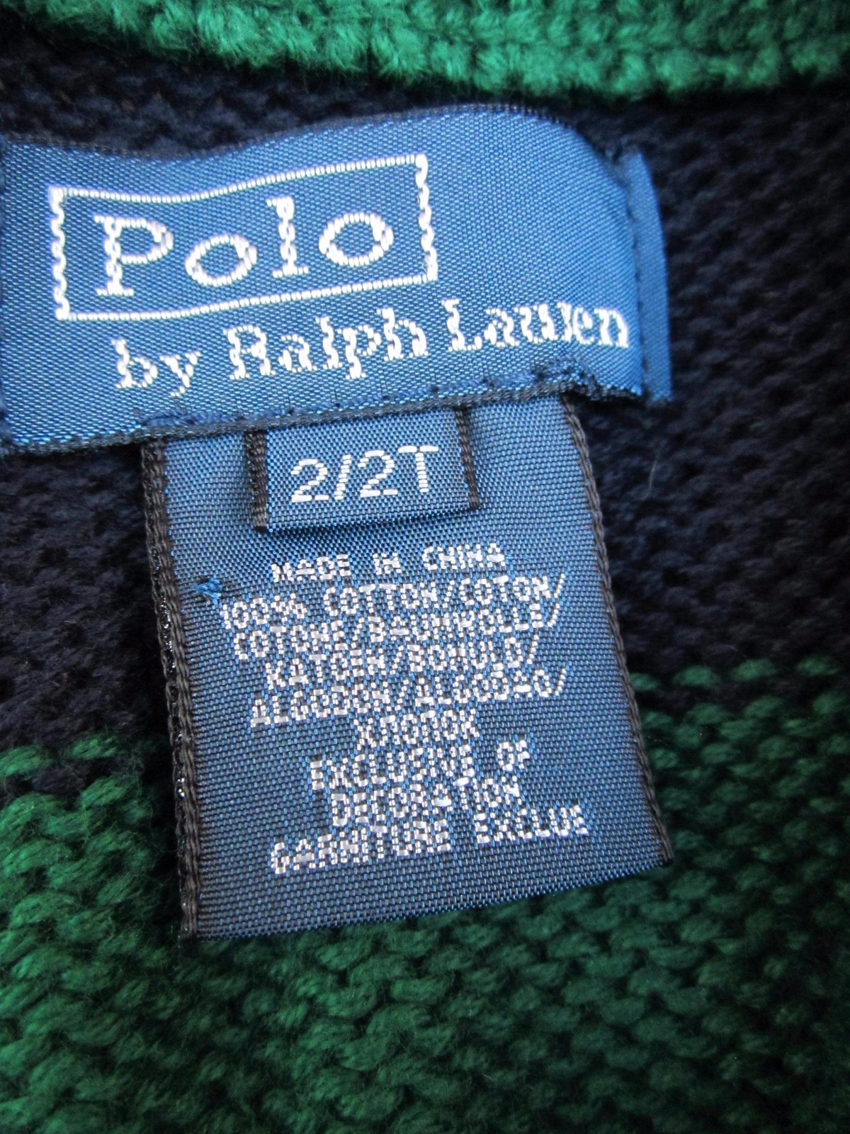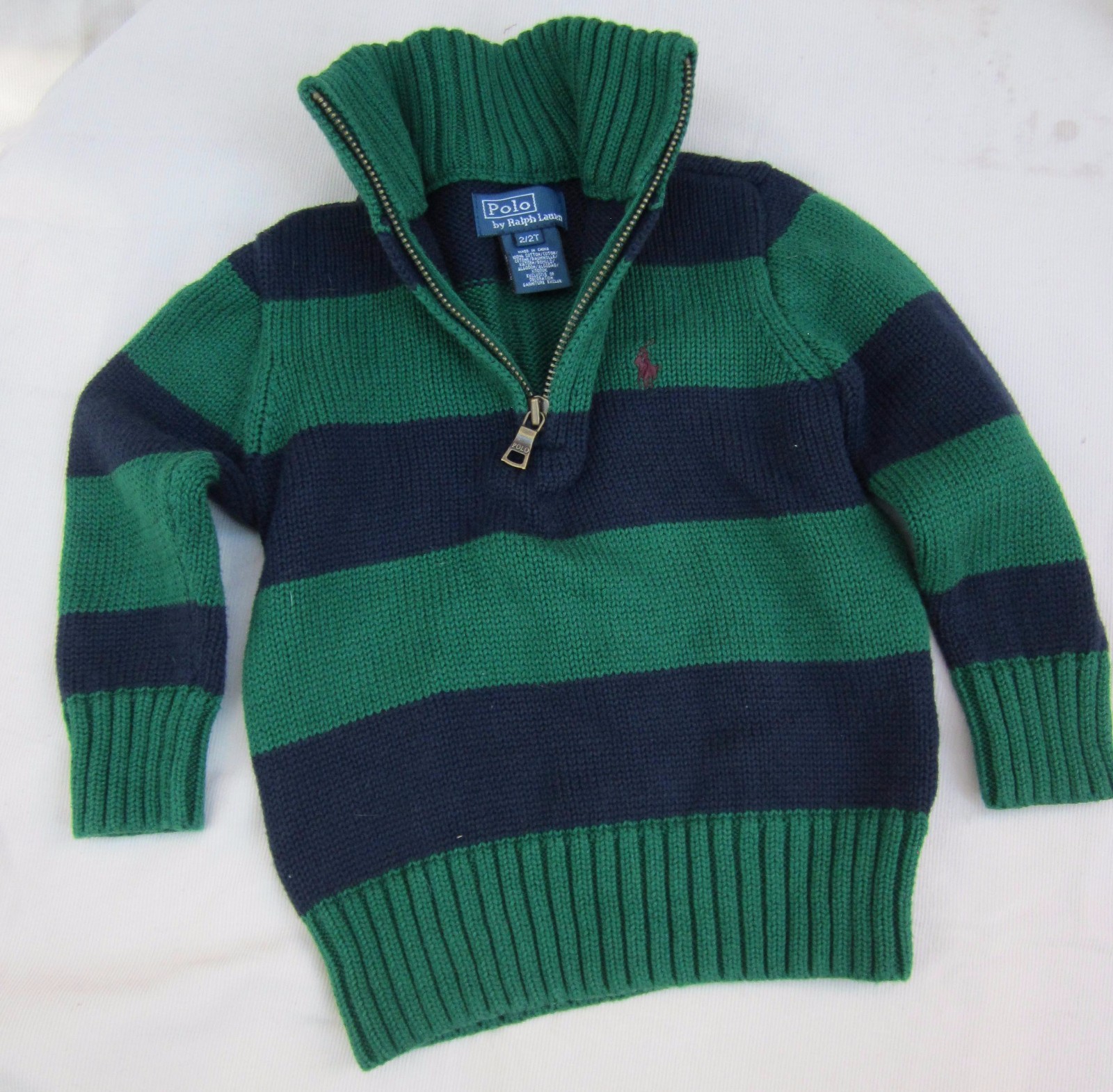 как выглядит Ralph Lauren Polo Childrens Cotton Turtleneck 2/2T Green/Blue Stripe Zipper W W фото