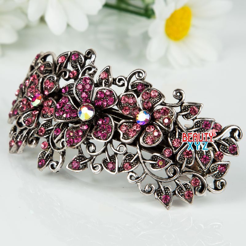 Woman's new flowers design silver plated metal rhinestone hair clip Barrette