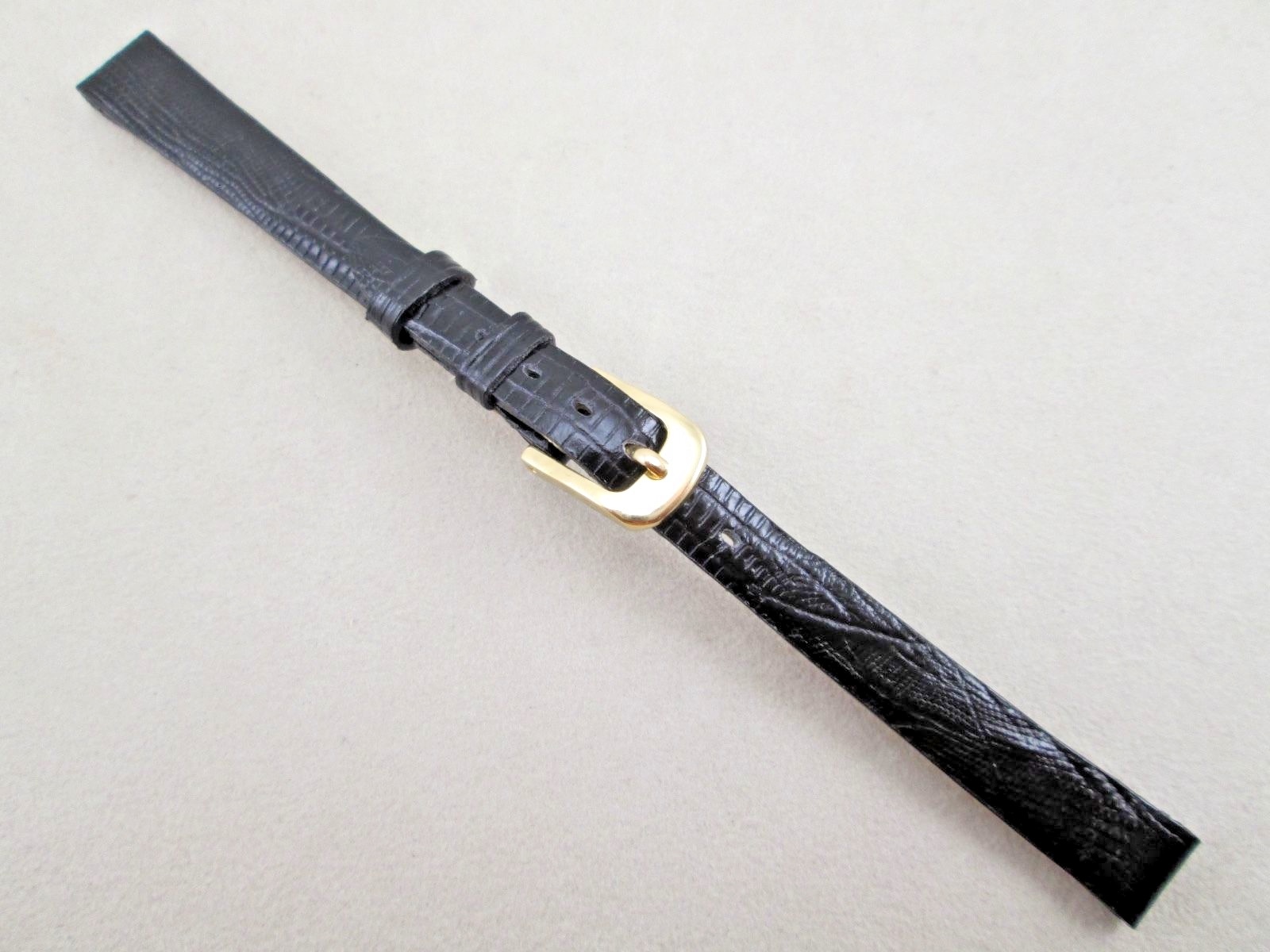 10mm lady's regular length black leather watch band lizard grain handmade France