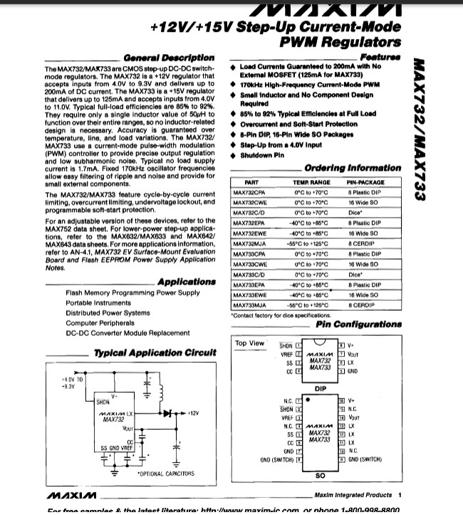 QTY 10 MAX732CWE MAXIM SOIC-16W STEP UP PWM REGULATOR NOS