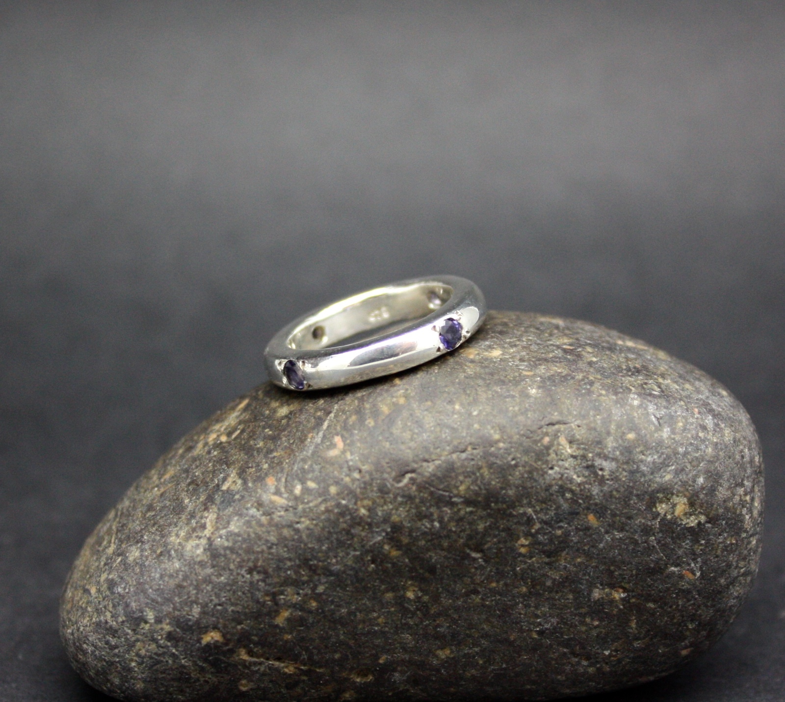 SOLID SILVER with 4 IOLITE STONES in RING .925 STERLING FAST FREE SHIPPING