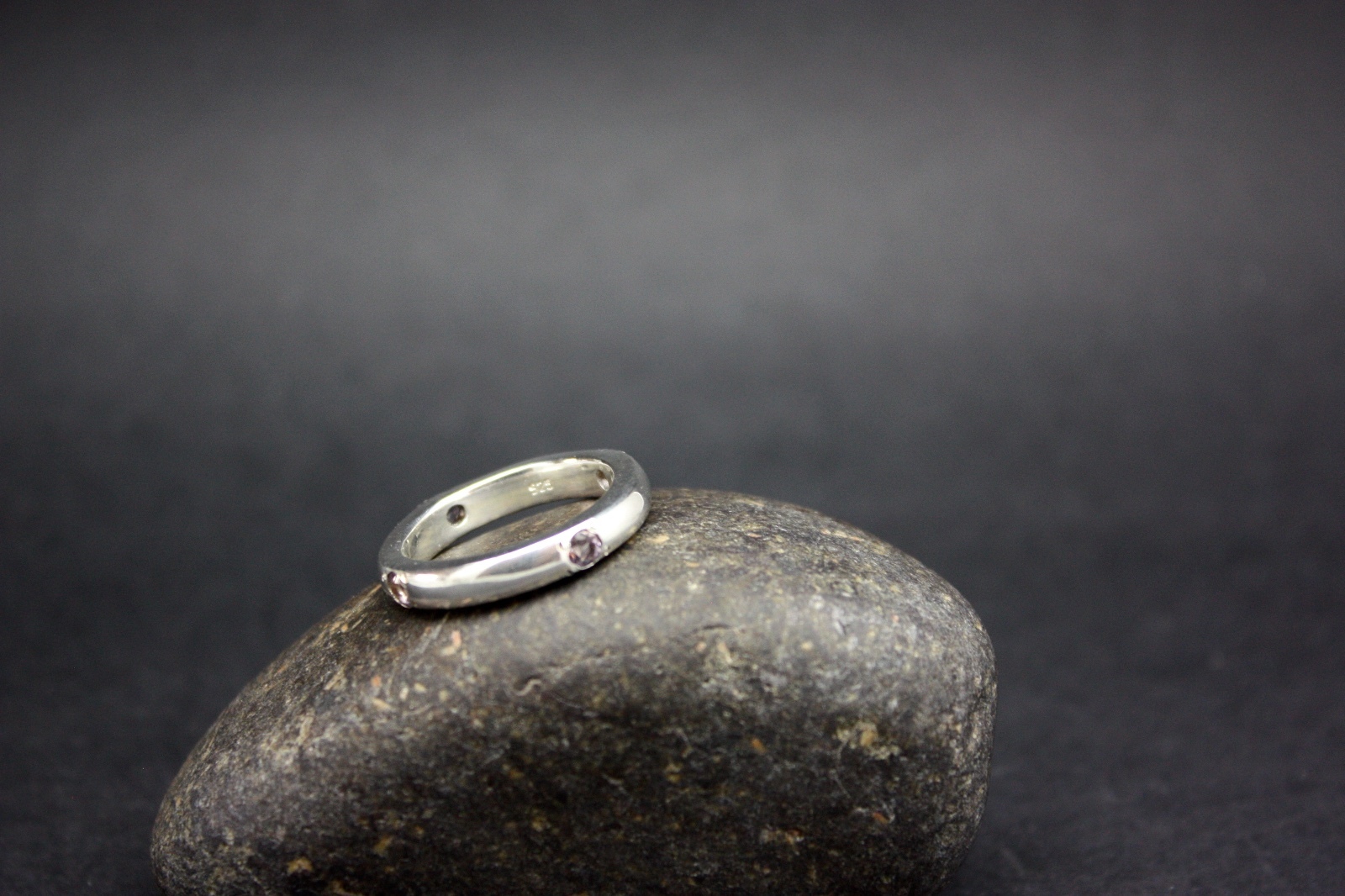 SOLID SILVER with 4 AMETHYST STONES set in RING .925 STERLING FREE SHIPPING
