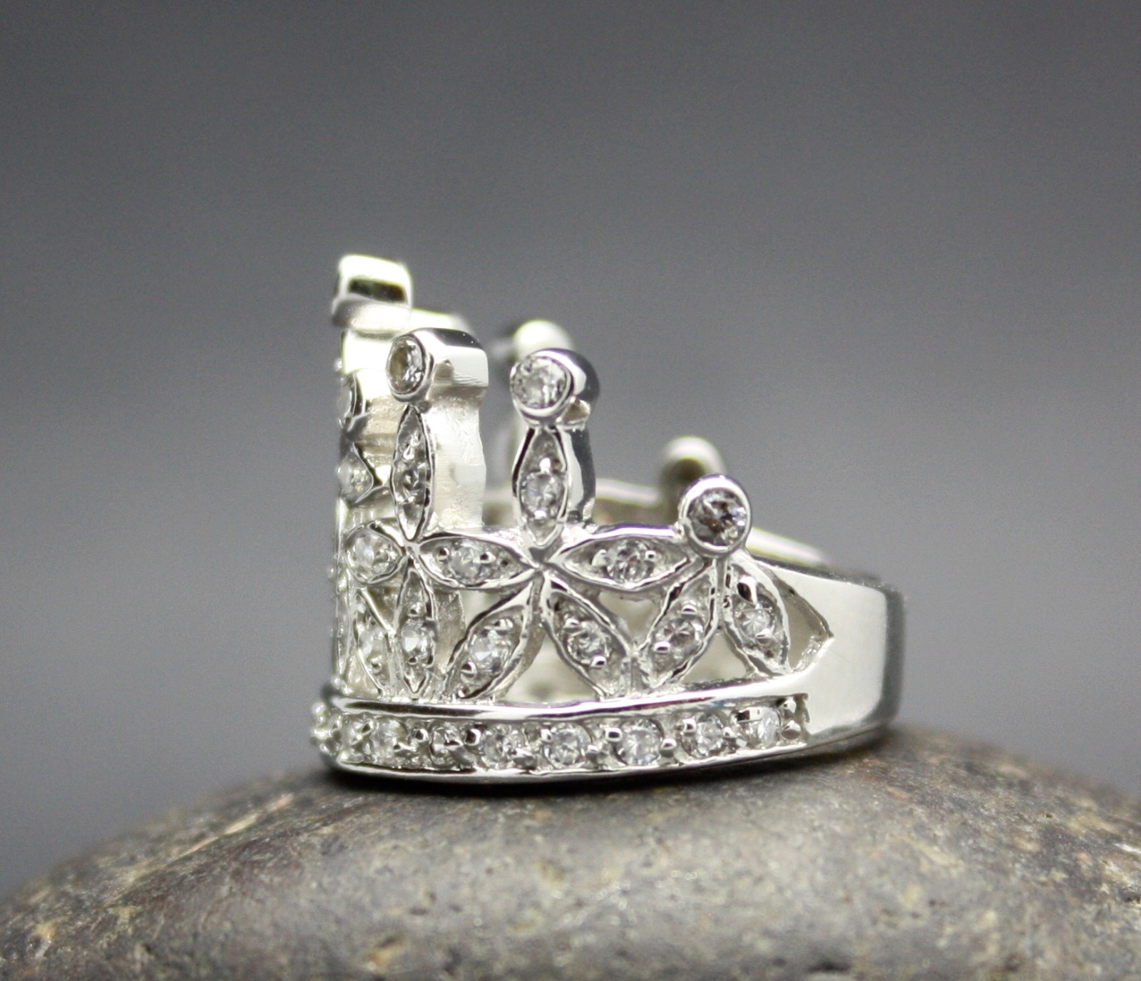 как выглядит CROWN RING with CUBIC ZIRCONIIA set in .925 STERLING SILVER FAST FREE SHIPPING фото