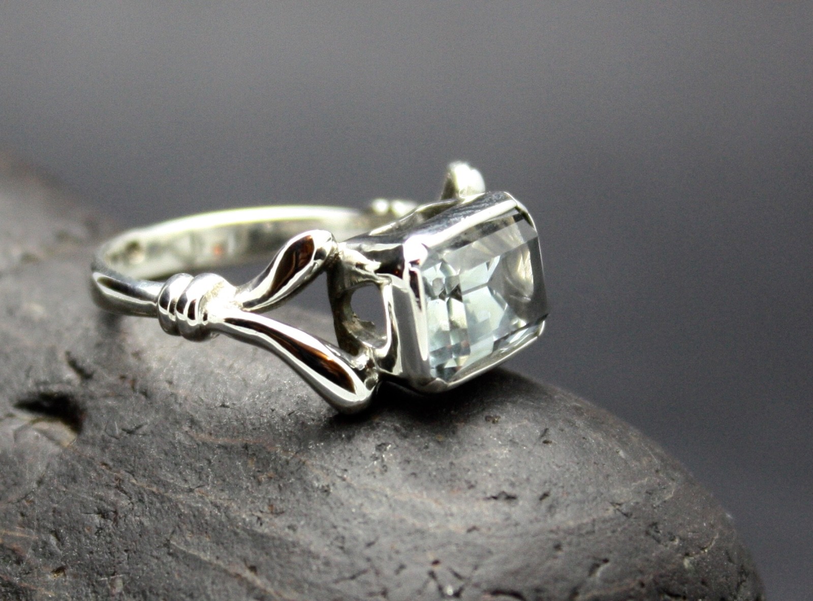 GENUINE AQUAMARINE RING EMERALD CUT .925 STERLING SILVER FAST FREE SHIPPING