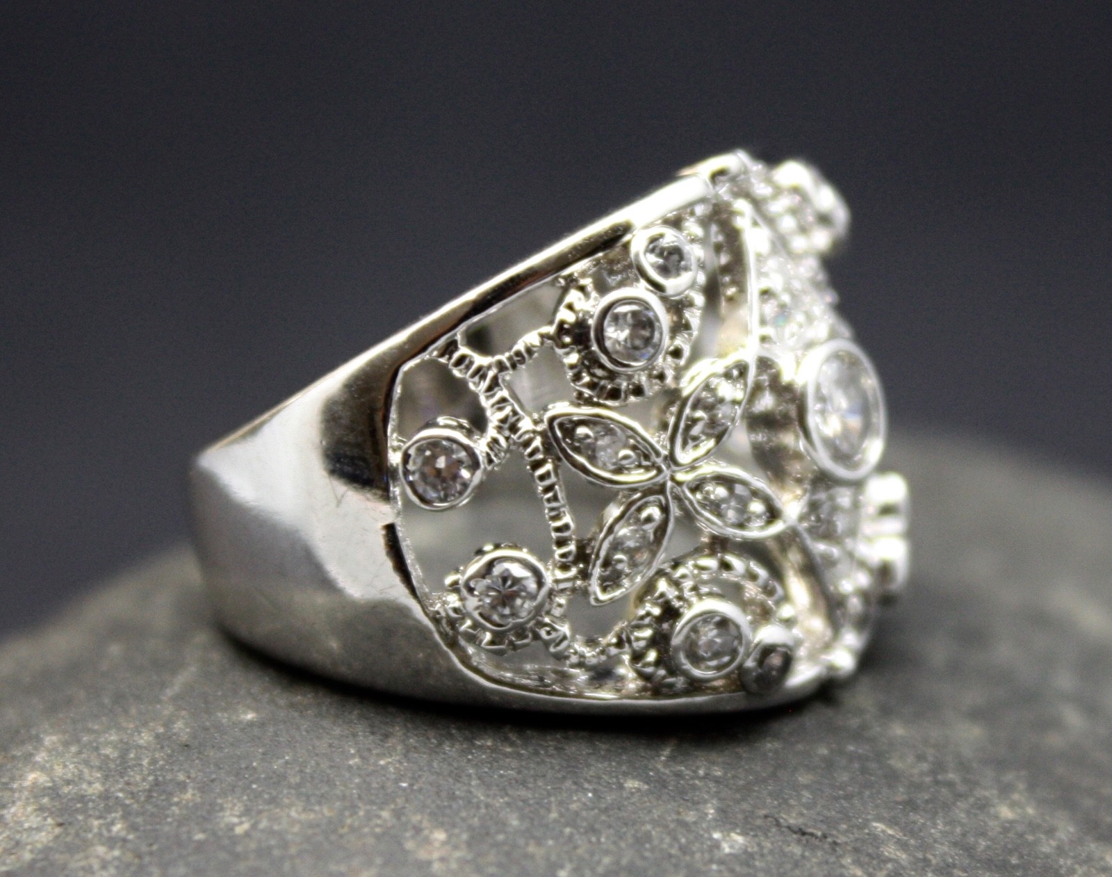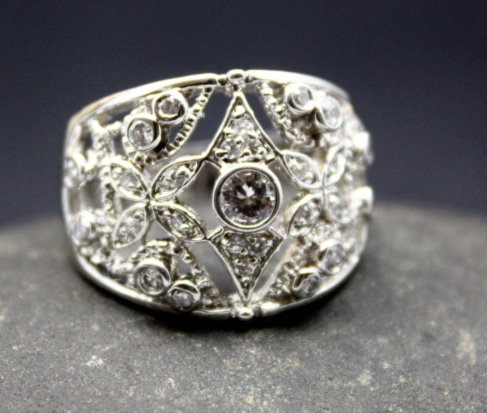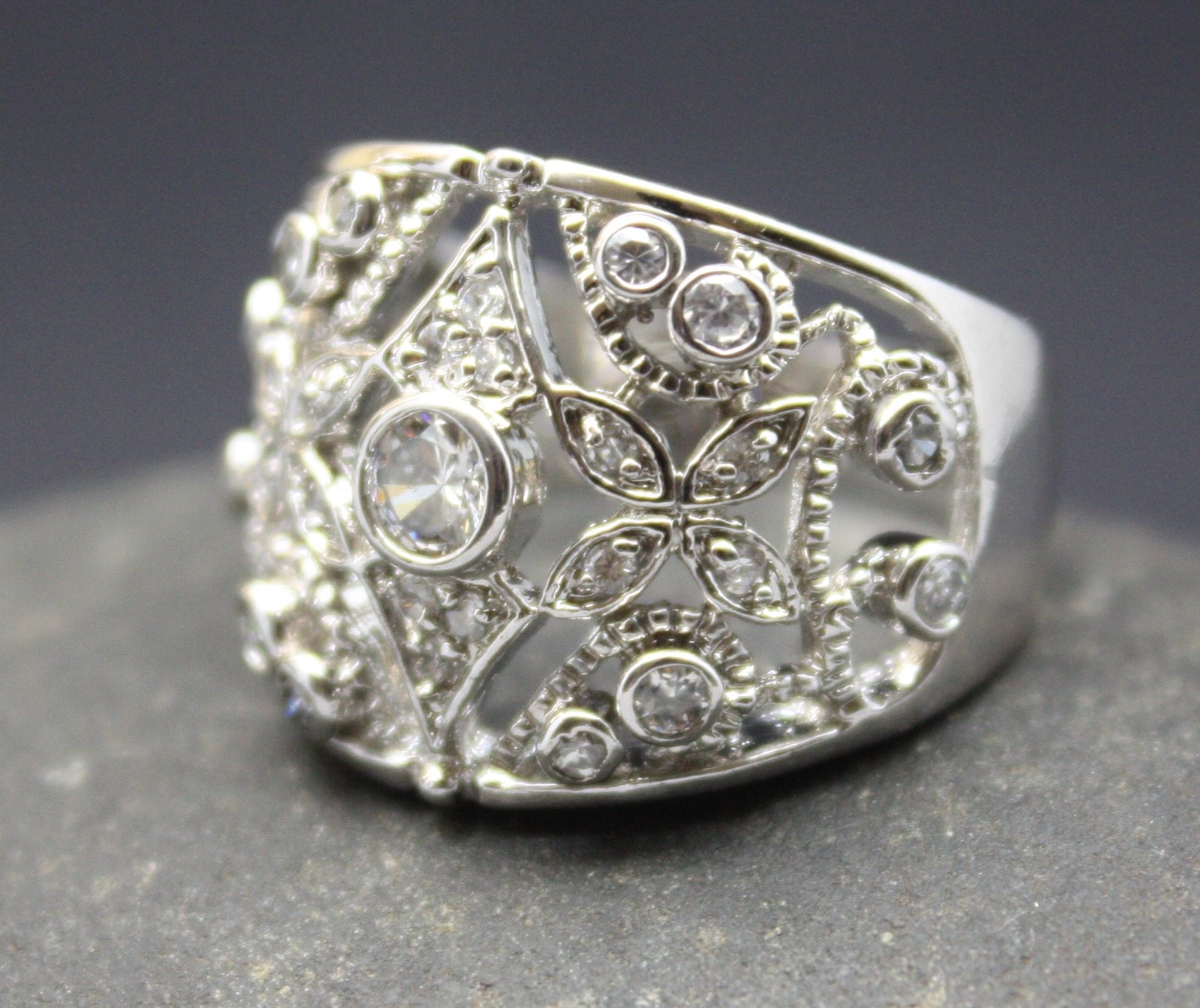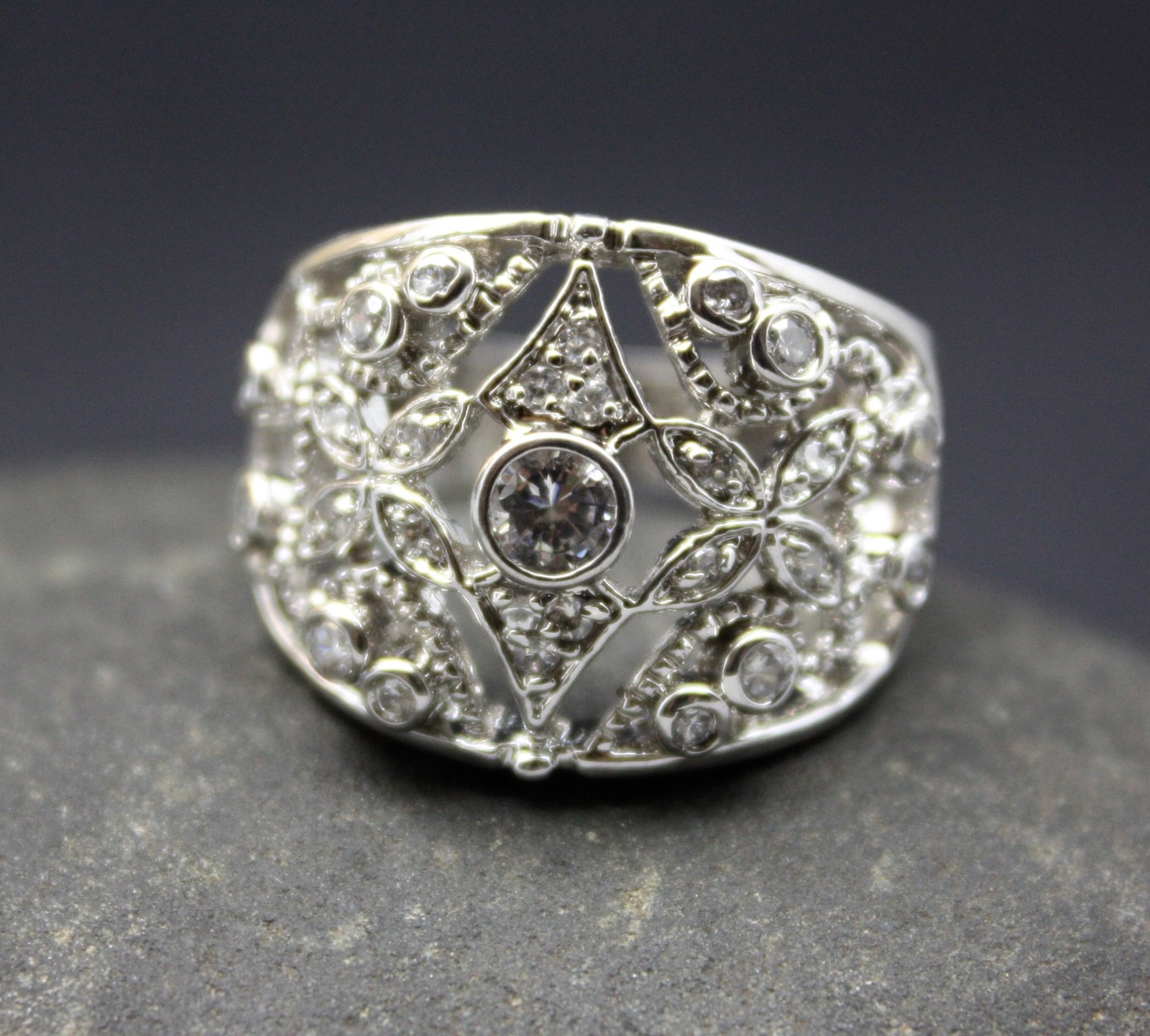 UNIQUE multi CUBIC ZIRCONIA set in .925 STERLING SILVER RING FAST SHIPPING
