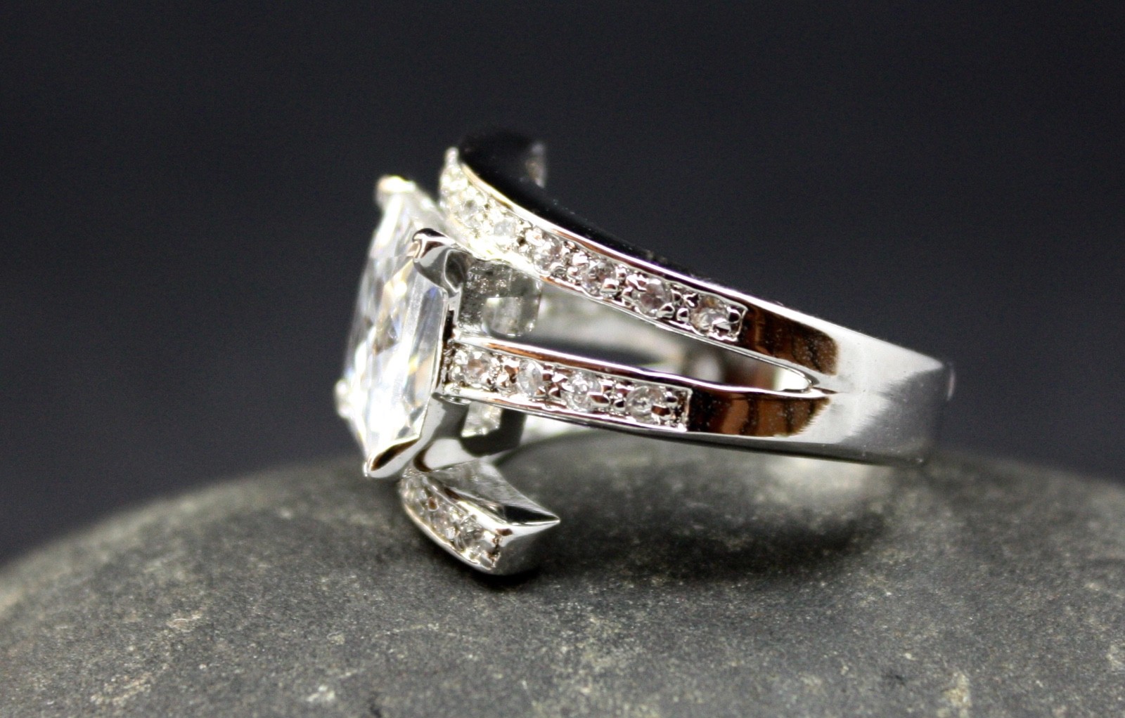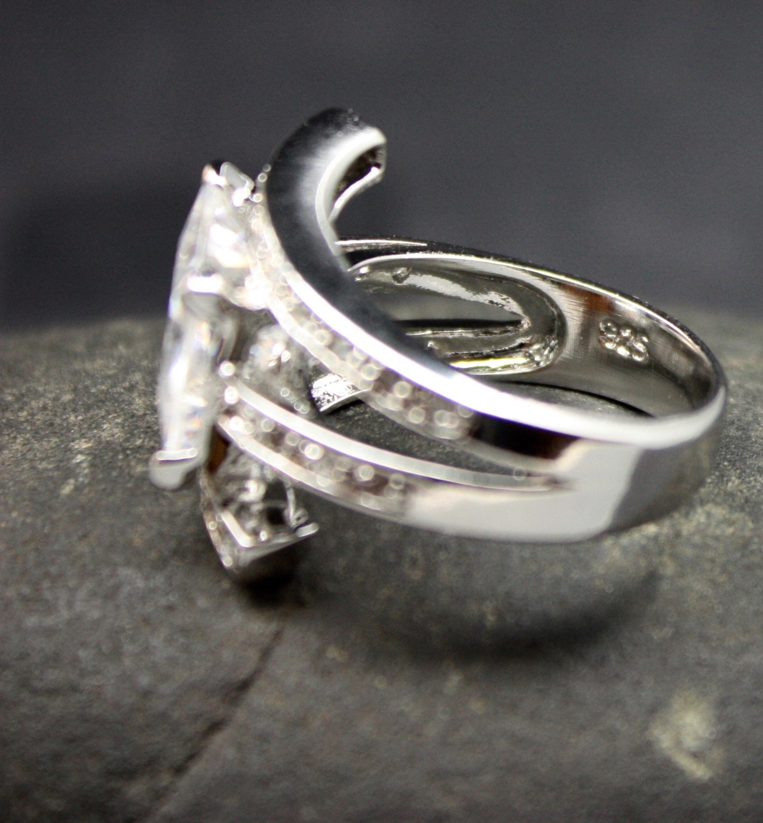 UNIQUE CUBIC ZIRCONIA RING set in .925 STERLING SILVER FREE FAST SHIPPING