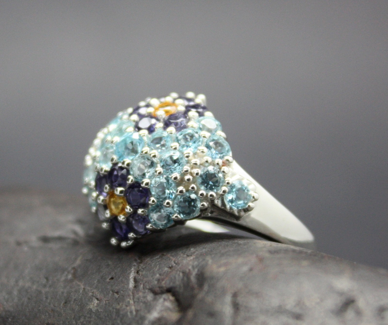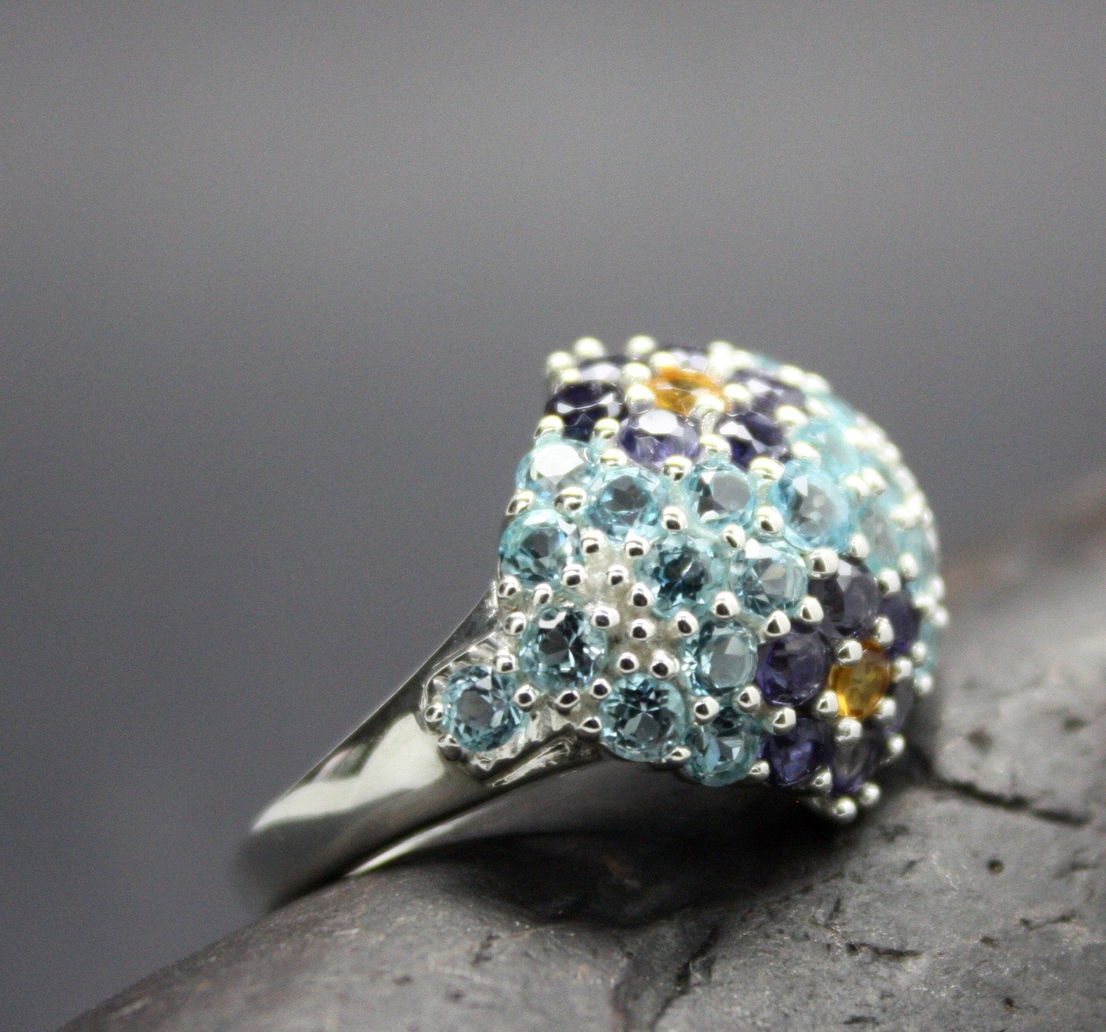 BLUE TOPAZ,CITRINE, IOLITE RING in 925 STERLING SILVER Size 9 FREE SHIPPING