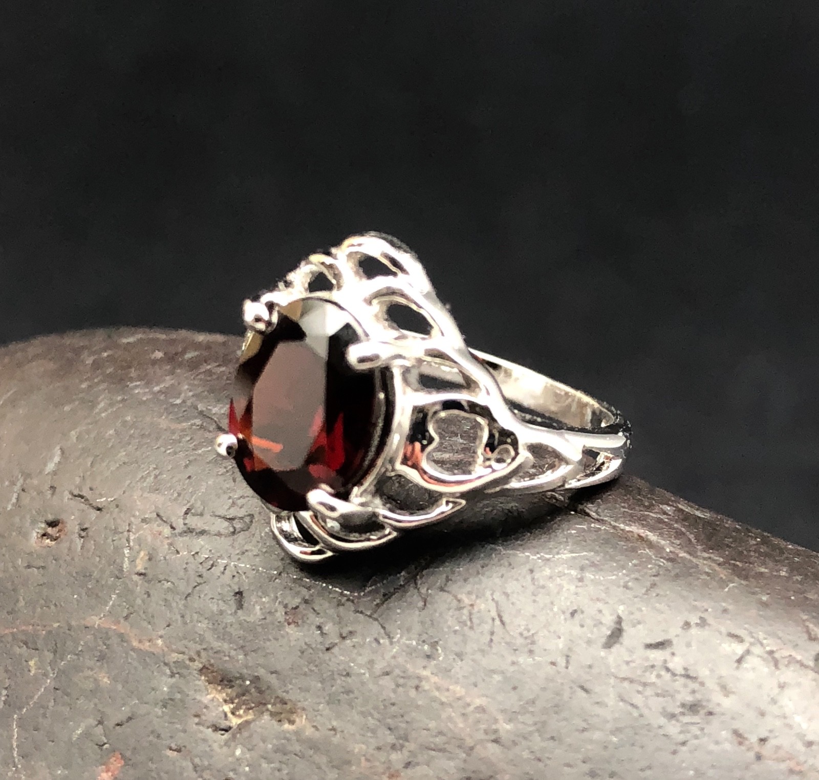 GENUINE GARNET RING OVAL CUT set in .925 STERLING SILVER Size 5 FREE SHIPPING