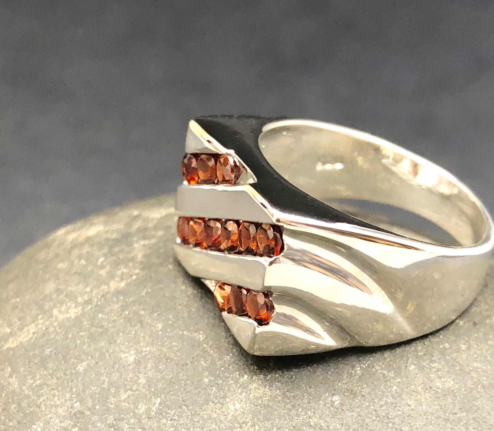 PAVE of GENUINE GARNETS set in .925 STERLING SILVER RING FAST FREE SHIPPING