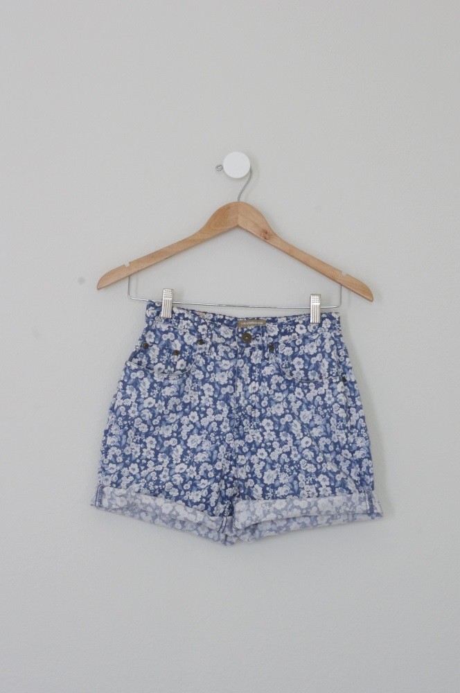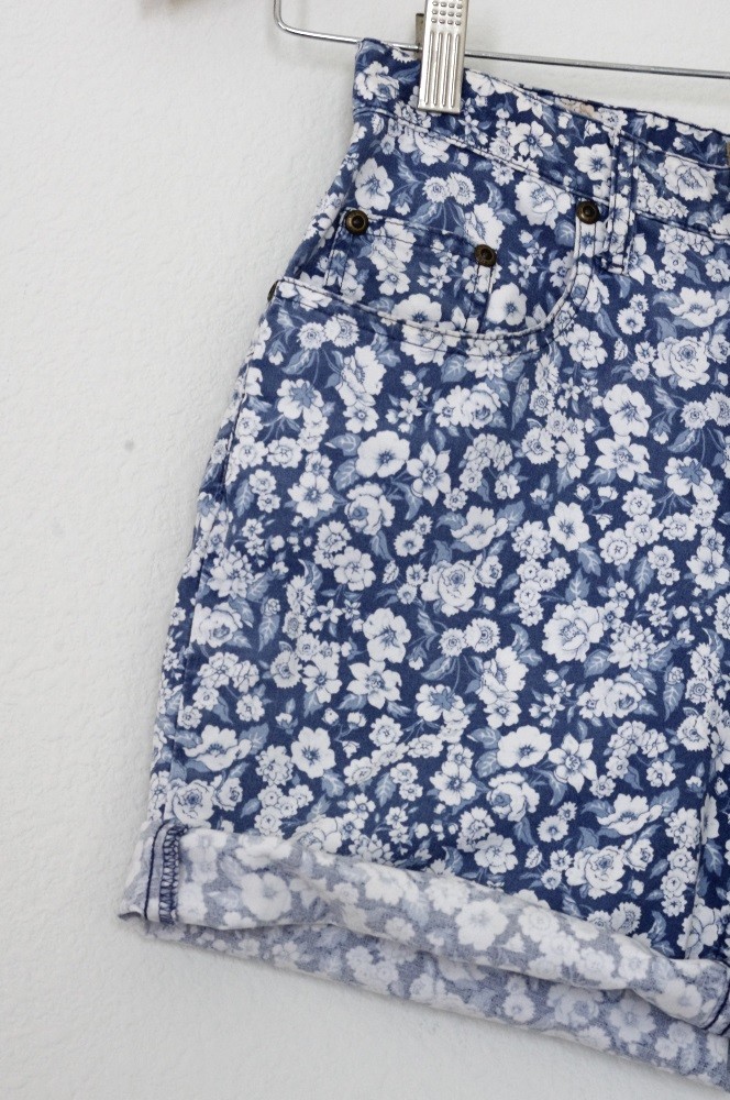 Vintage Liz Claiborne Blue Faded Floral High Rise Waisted Shorts Cutoffs 1990s S