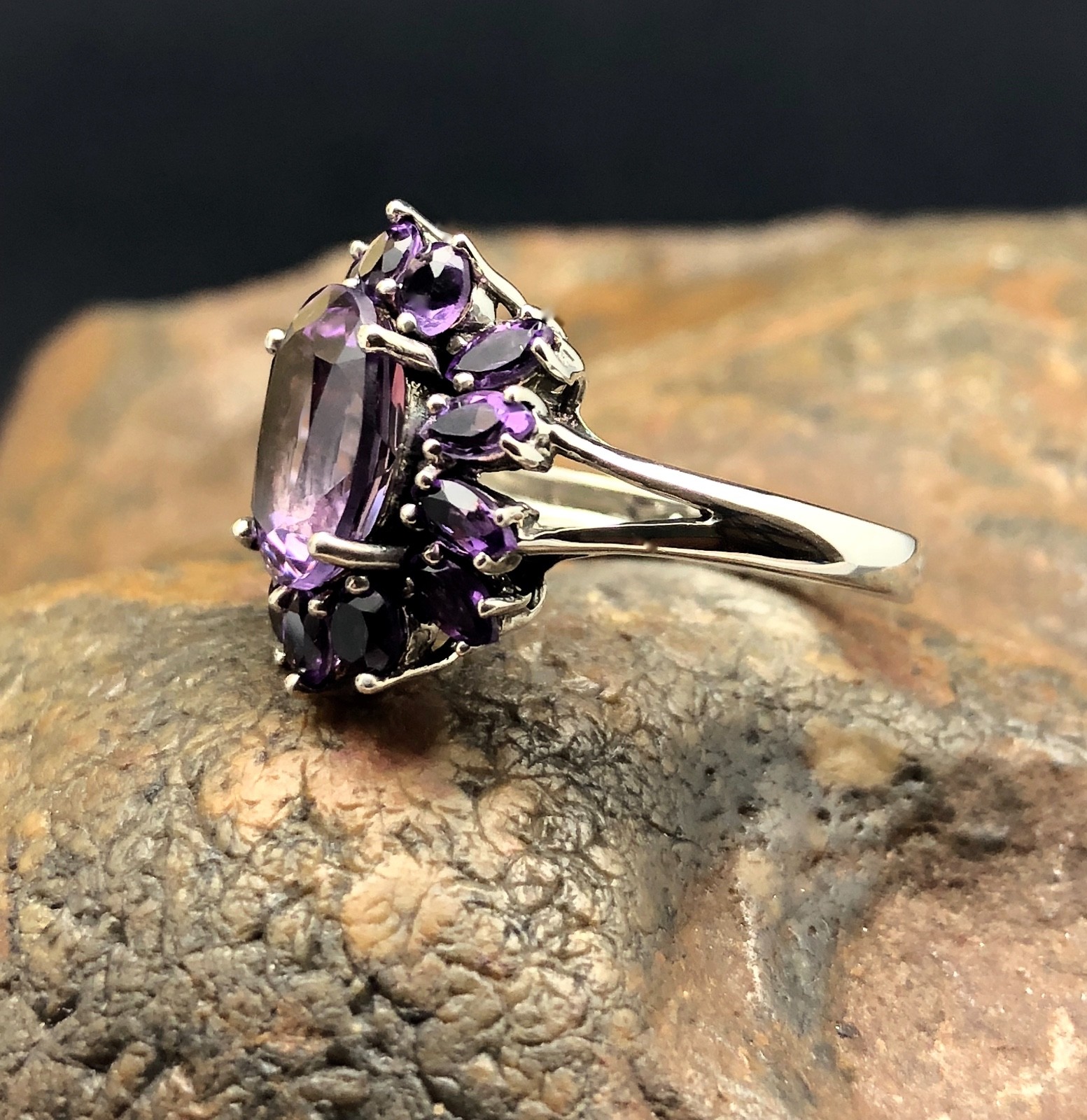 GENUINE AMETHYST RING set in .925 STERLING SILVER SIZE 5 FREE SHIPPING