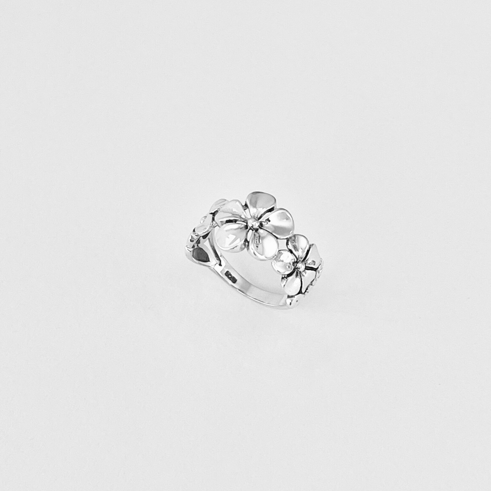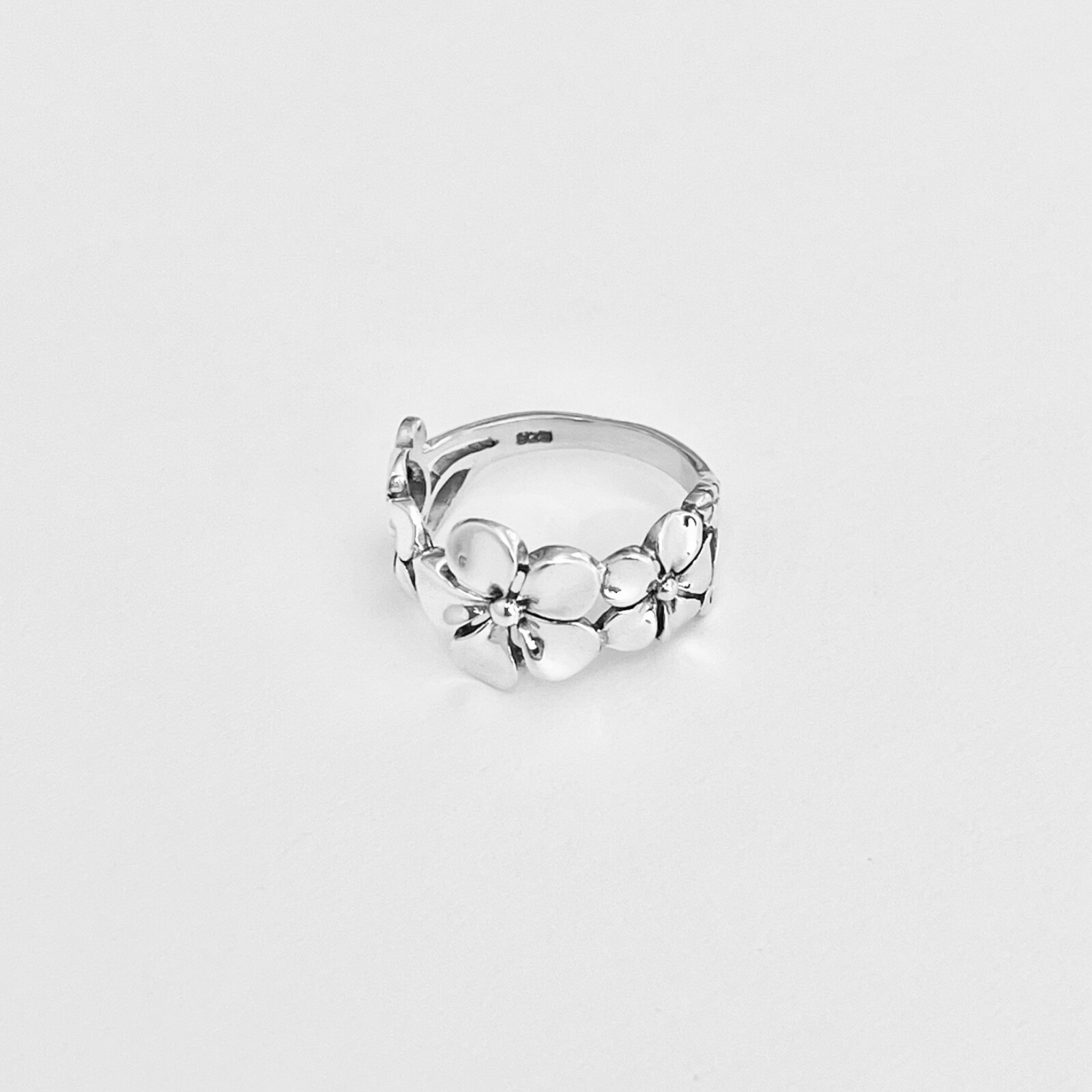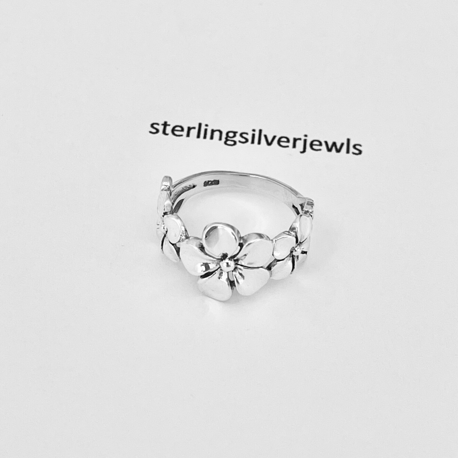 Sterling Silver 3 Plumeria Ring with Leaf, Lei Rings, Hawaii Flower Jewelry
