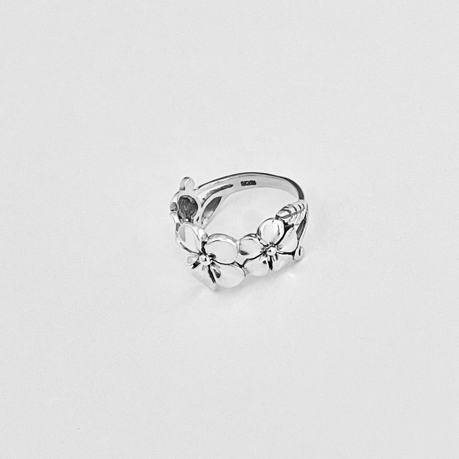 как выглядит Sterling Silver 3 Plumeria Ring with Leaf, Lei Rings, Hawaii Flower Jewelry фото