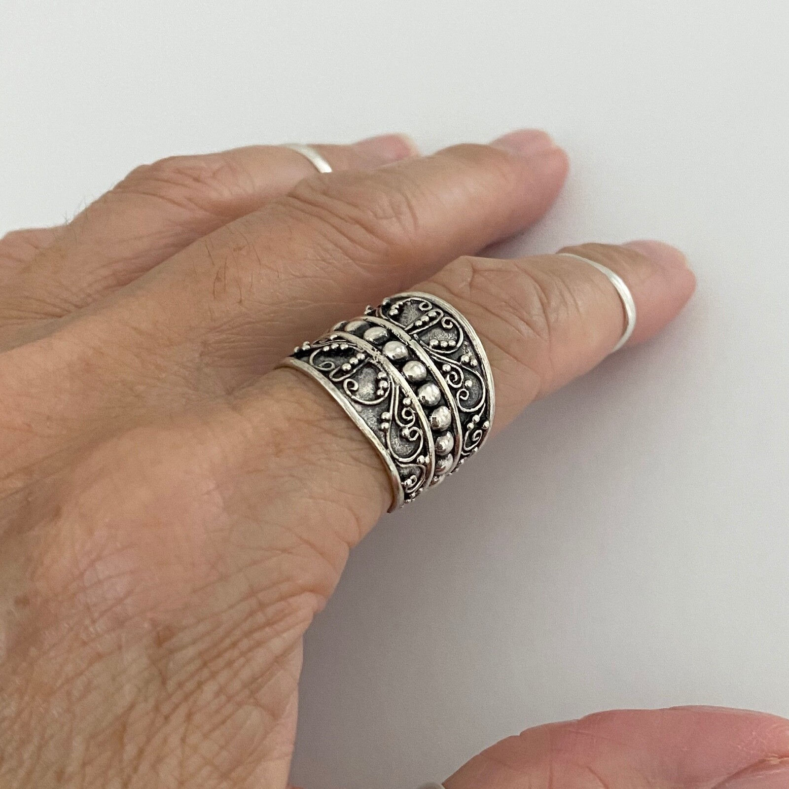 как выглядит Sterling Silver Bali Design Swirly Ring, Wide Band, Bali Ring, Silver Ring фото