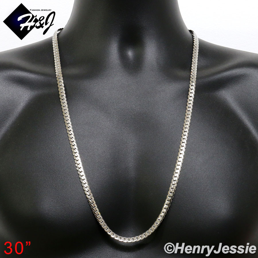 как выглядит 18-40"MEN Stainless Steel 6mm Silver Diamond Cut Miami Cuban Chain Necklace фото