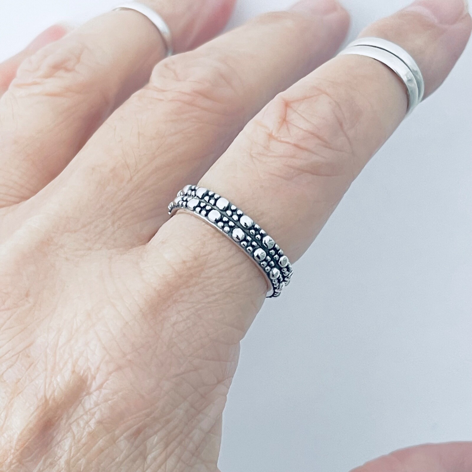 Sterling Silver Bali Style Beads Ring, Silver Rings, Wedding Bands, Bead Band