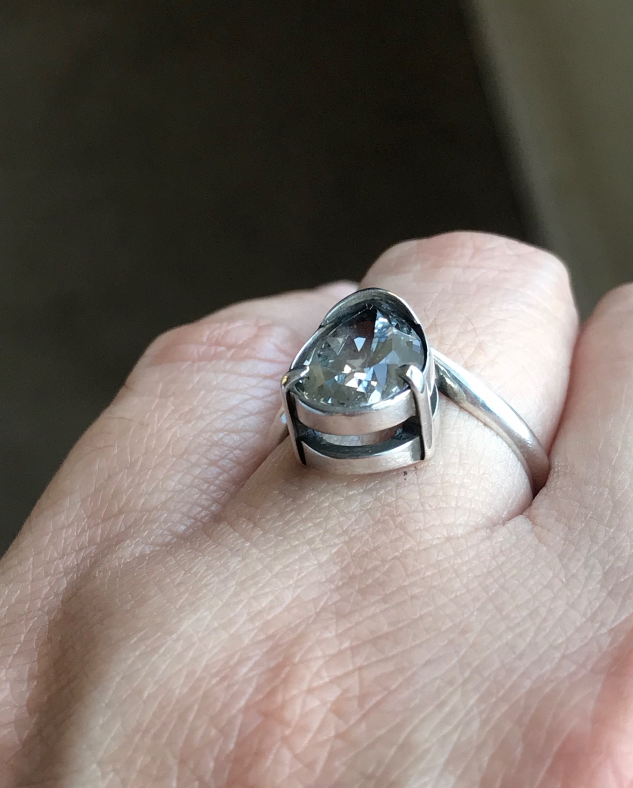 MODERN WHITE TOPAZ GEMSTONE RING set in .925 STERLING SILVER FREE SHIPPING