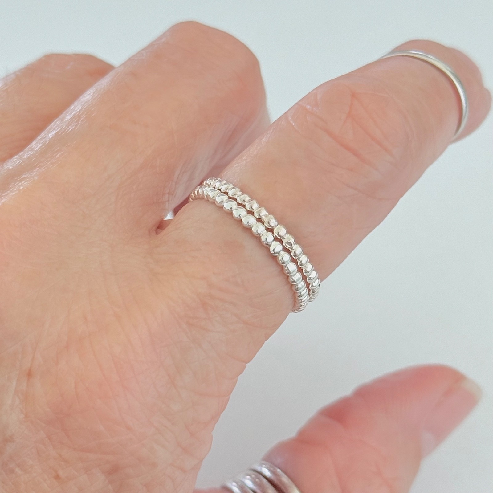 как выглядит Sterling Silver Eternity Beads Band Ring, Stackable Bead Rings, Wedding Bands фото