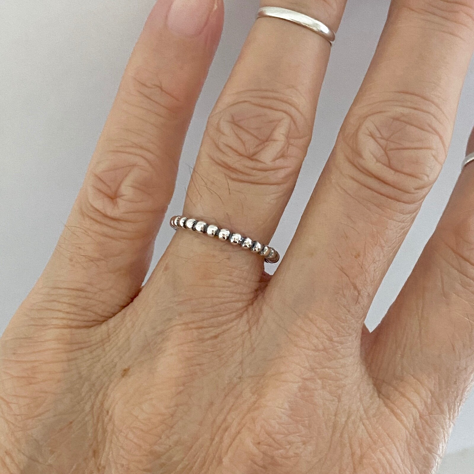 как выглядит Sterling Silver Eternity Bead Ring, Stackable Band, Silver Rings, Beads, Dots фото