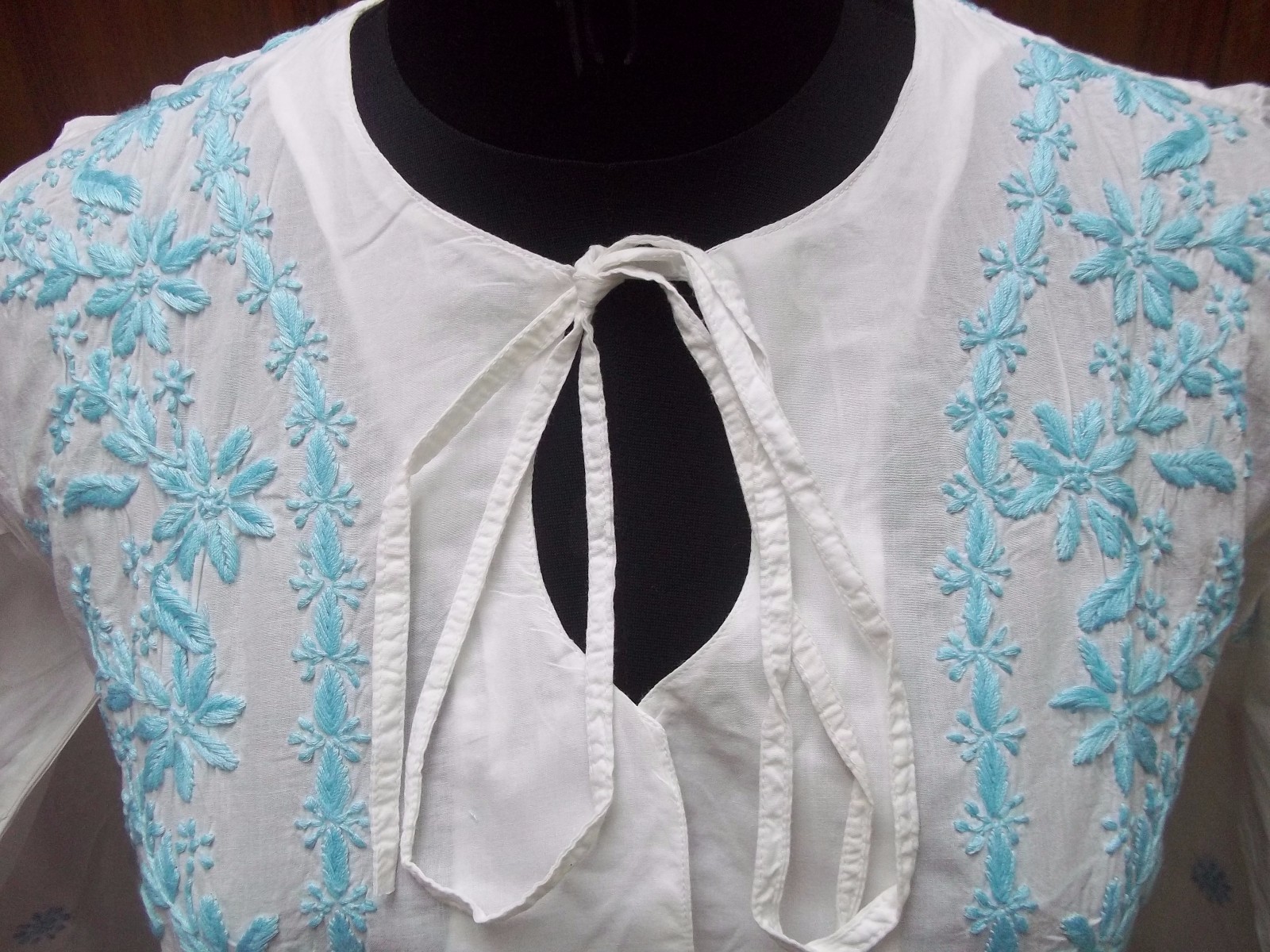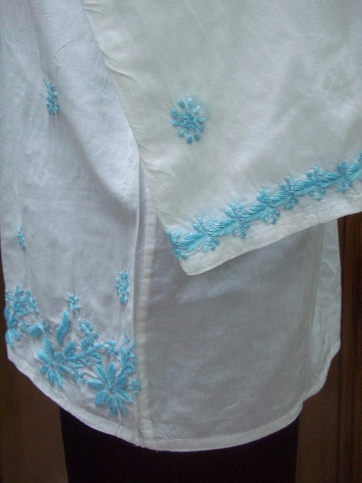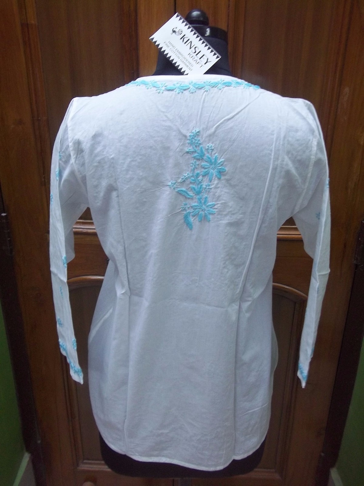 как выглядит 100 COTTON M 41" SHIRT HANDMADE TOP KURTA ETHNIC KURTI TUNIC CHIKAN EMBROIDERY фото