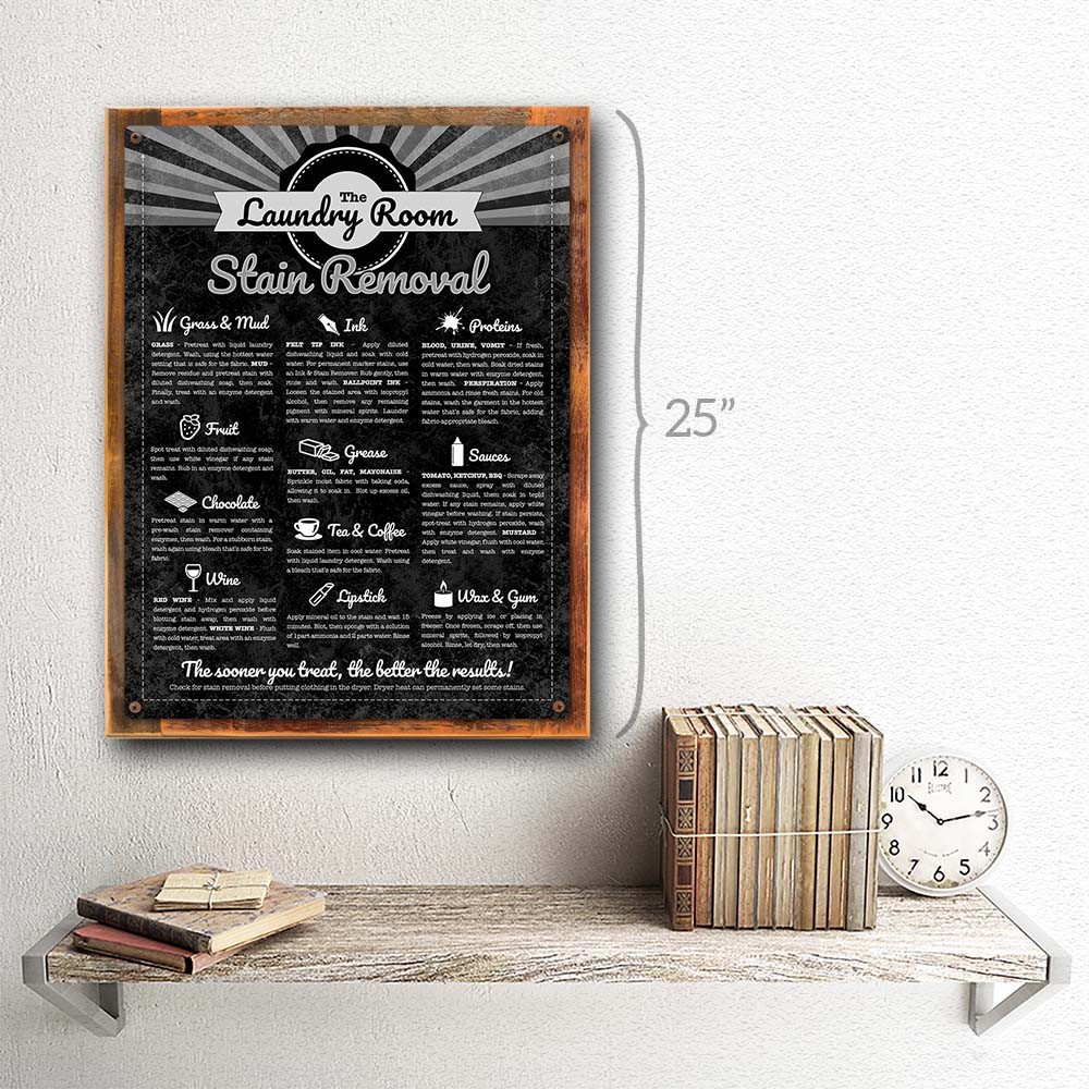 Laundry Room Stain Removal Guide Metal Sign; Wall Decor for Bath or Laundry