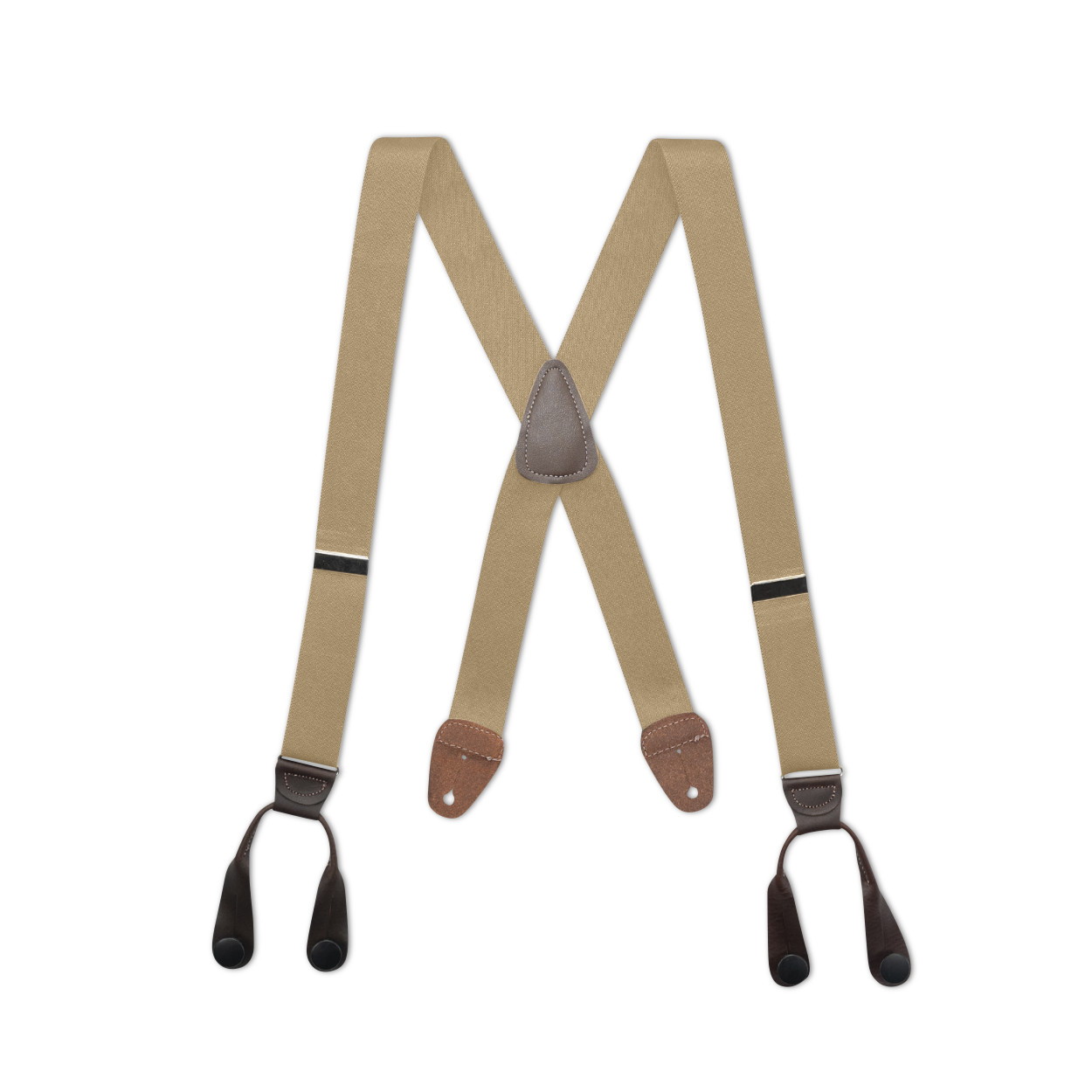 Men's Gold Tone Button-On Suspenders with Leather Ears, Many Colors - USA Made