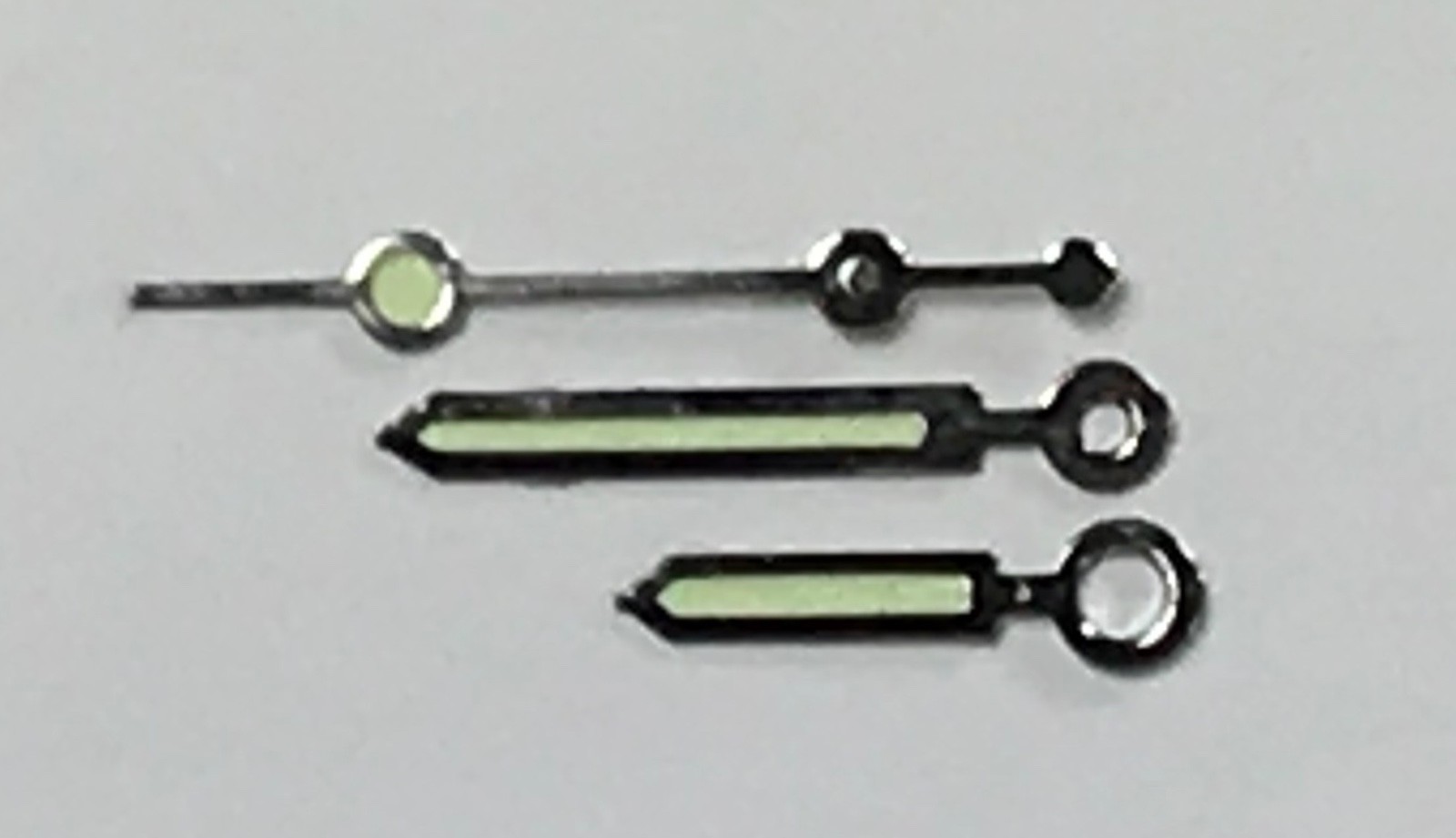 Luminous Hour Minute Sec Hands Watch parts Lume green NEW SILVER parts 120/70/20