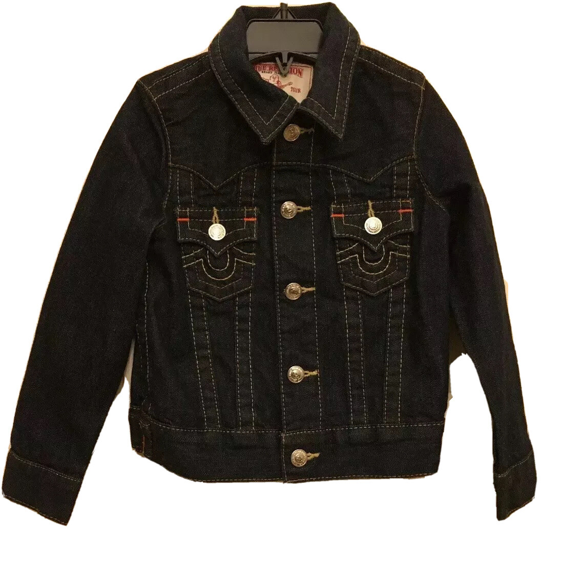 NEW TRUE RELIGION Boys Jimmy Young Boys Dark Wash Denim Jacket, Size XS 4-5
