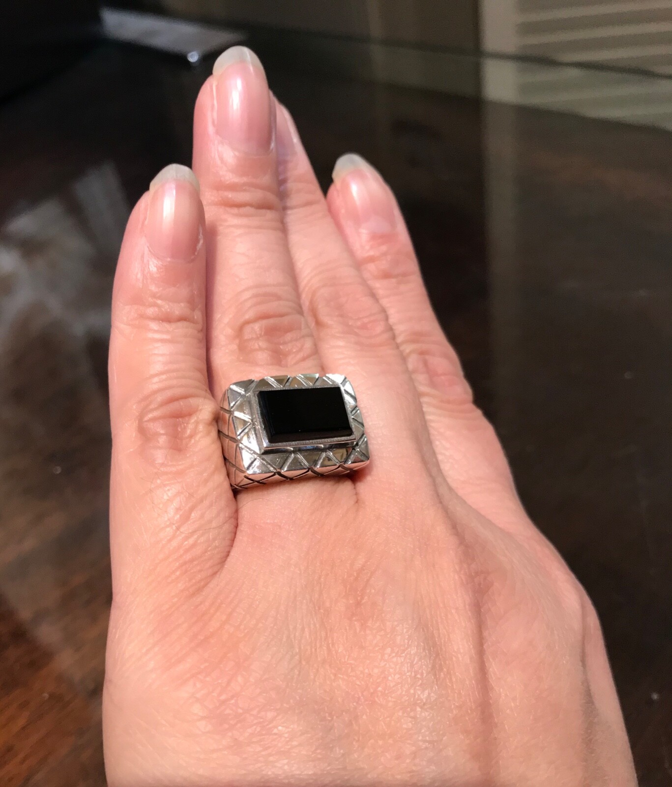 как выглядит GENUINE BLACK ONYX RING 925 STERLING SILVER Size 6.5 FREE FAST SHIPPING фото