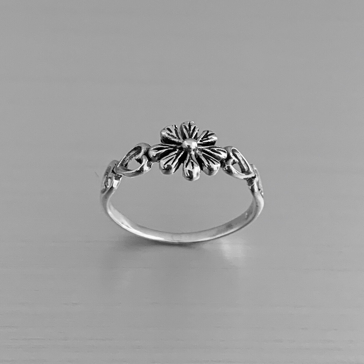 Sterling Silver Flower with Hearts Ring, Silver Rings, Flower Ring, Heart Ring