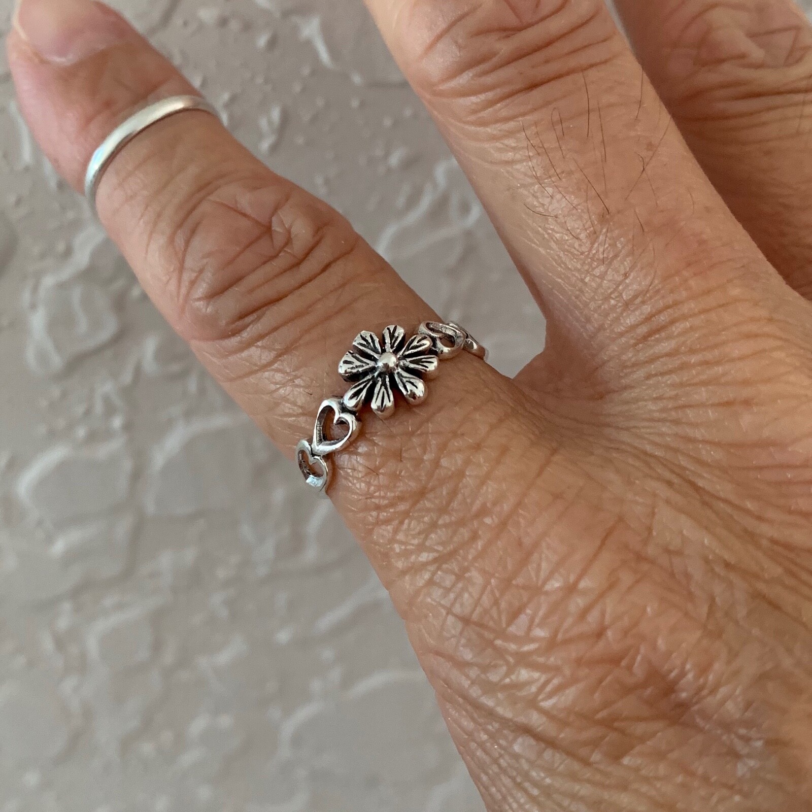 как выглядит Sterling Silver Flower with Hearts Ring, Silver Rings, Flower Ring, Heart Ring фото