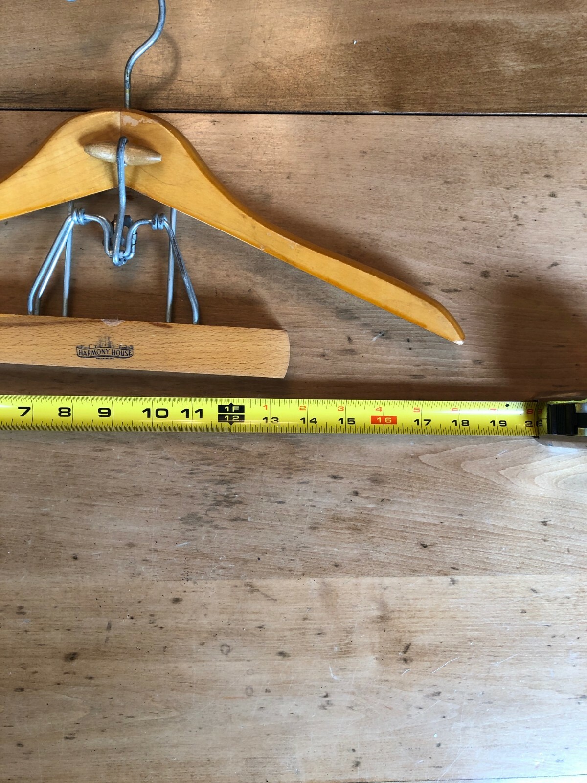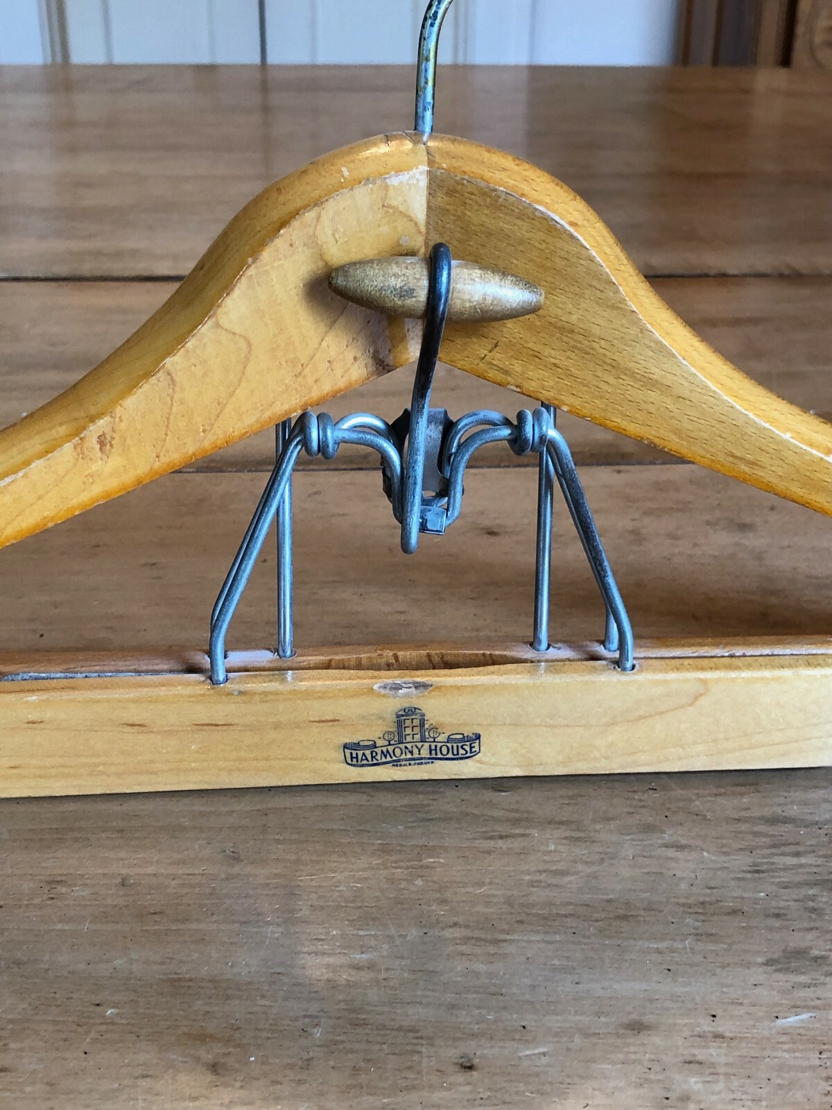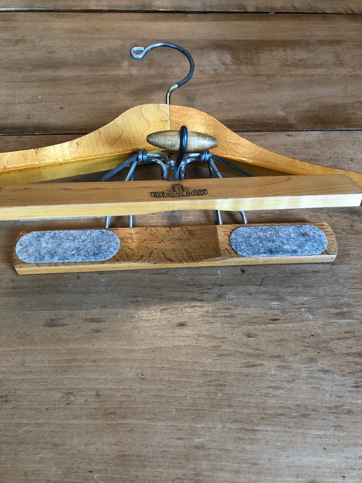 как выглядит Vintage HARMONY HOUSE 18" Wooden Coat Suit Felt Lined Pant Clamp Hanger LOT OF 2 фото