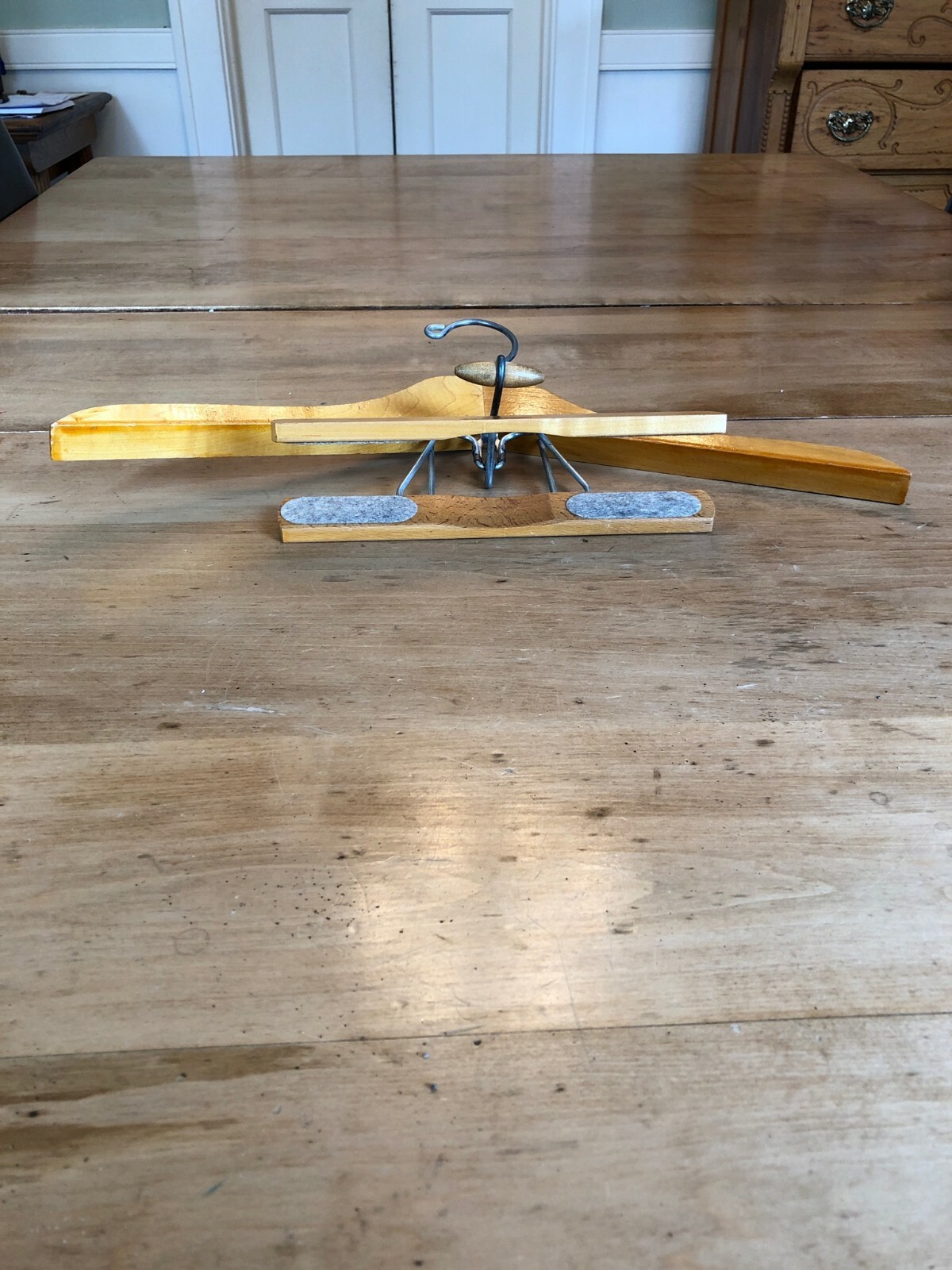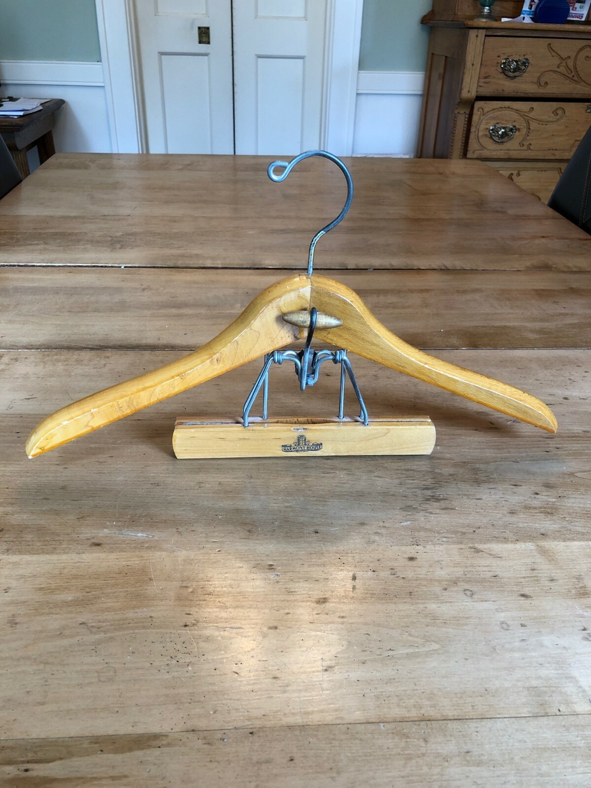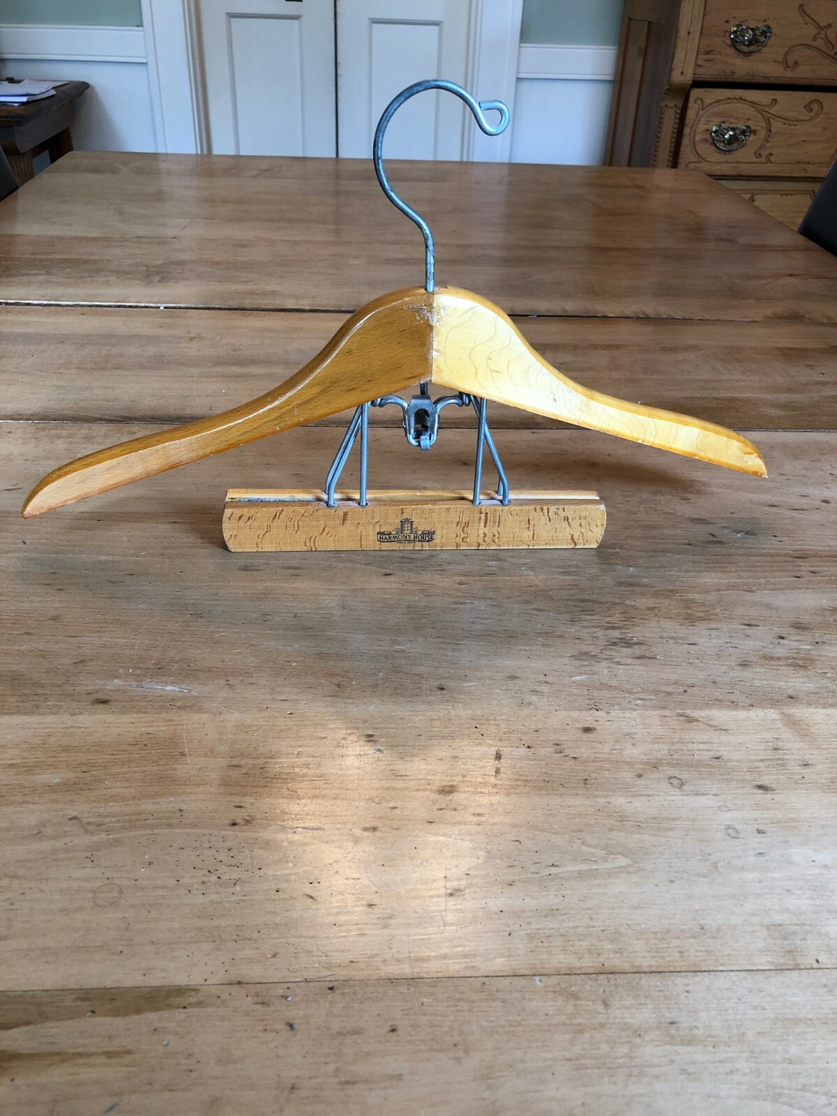 как выглядит Vintage HARMONY HOUSE 18" Wooden Coat Suit Felt Lined Pant Clamp Hanger LOT OF 2 фото