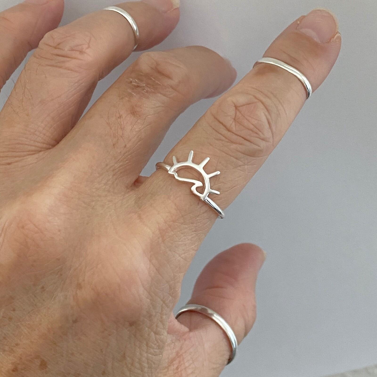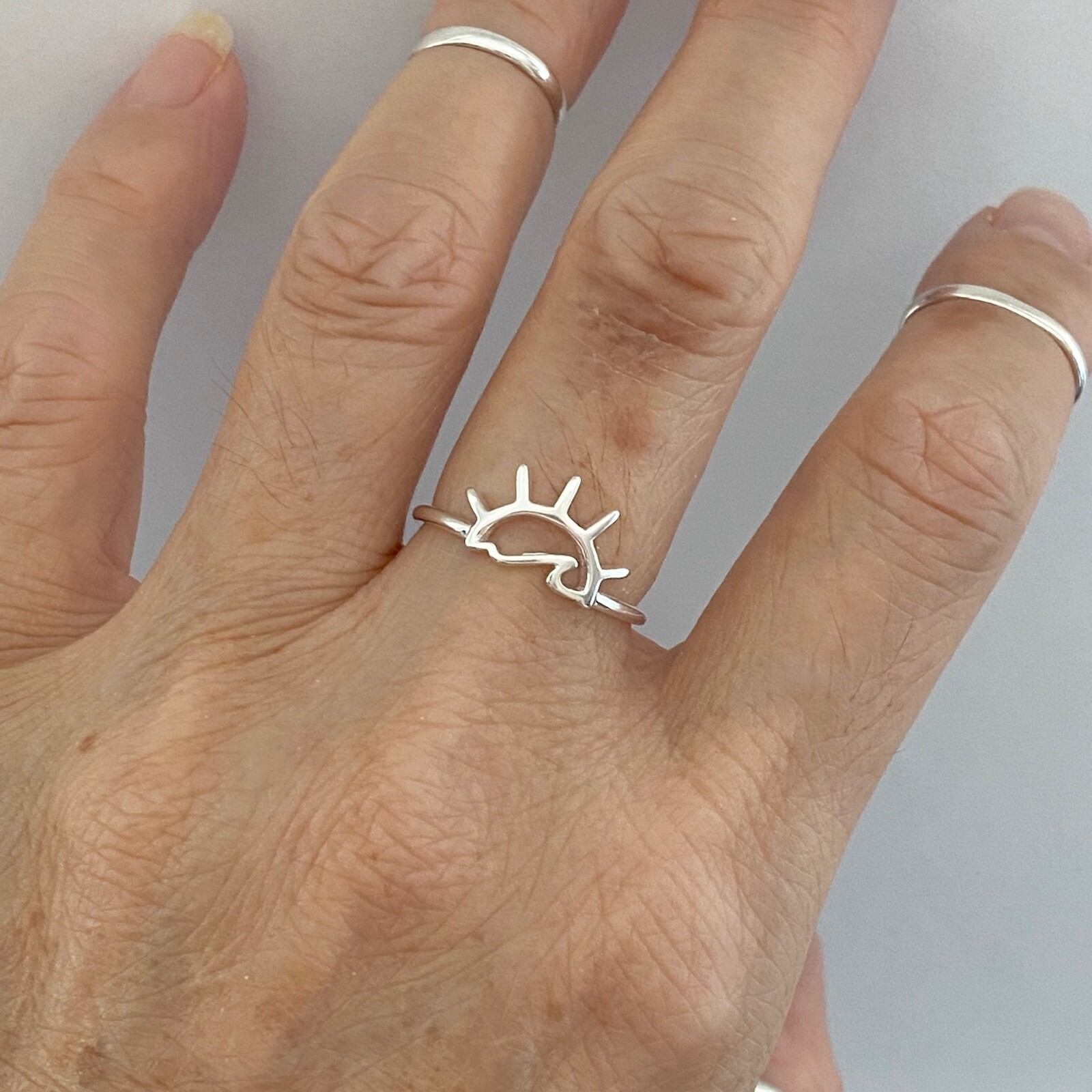 Sterling Silver Waves at Sunset Ring, Beach Rings, Sun and Wave Jewelry, Surfers