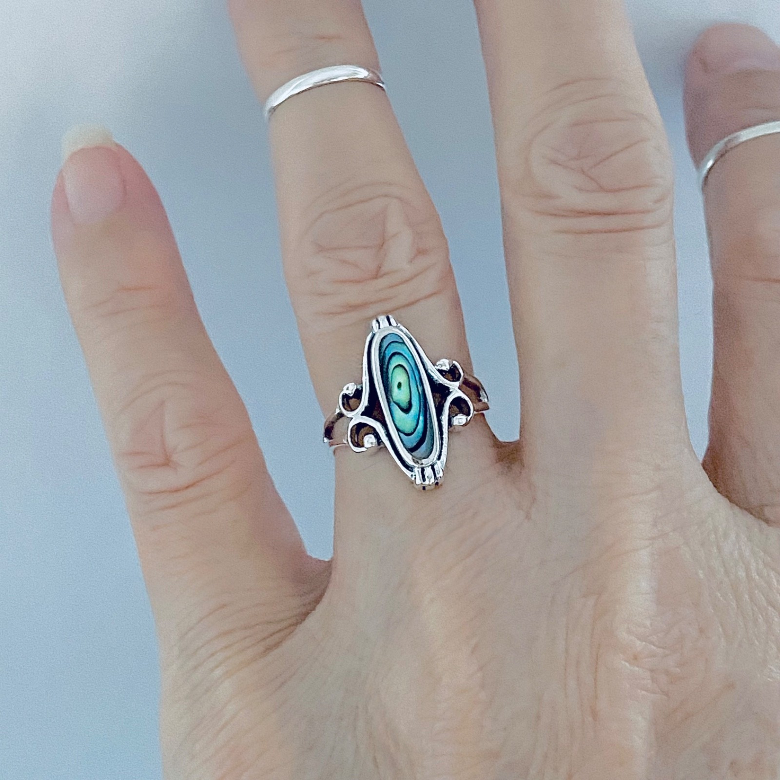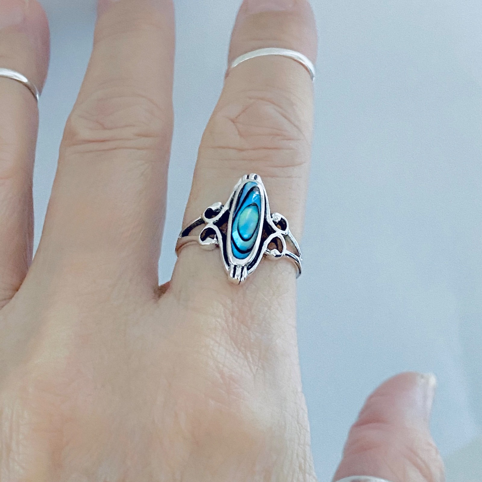 Sterling Silver Abalone Ring with Swirls, Silver Rings, Stone Ring, Ocean Shells