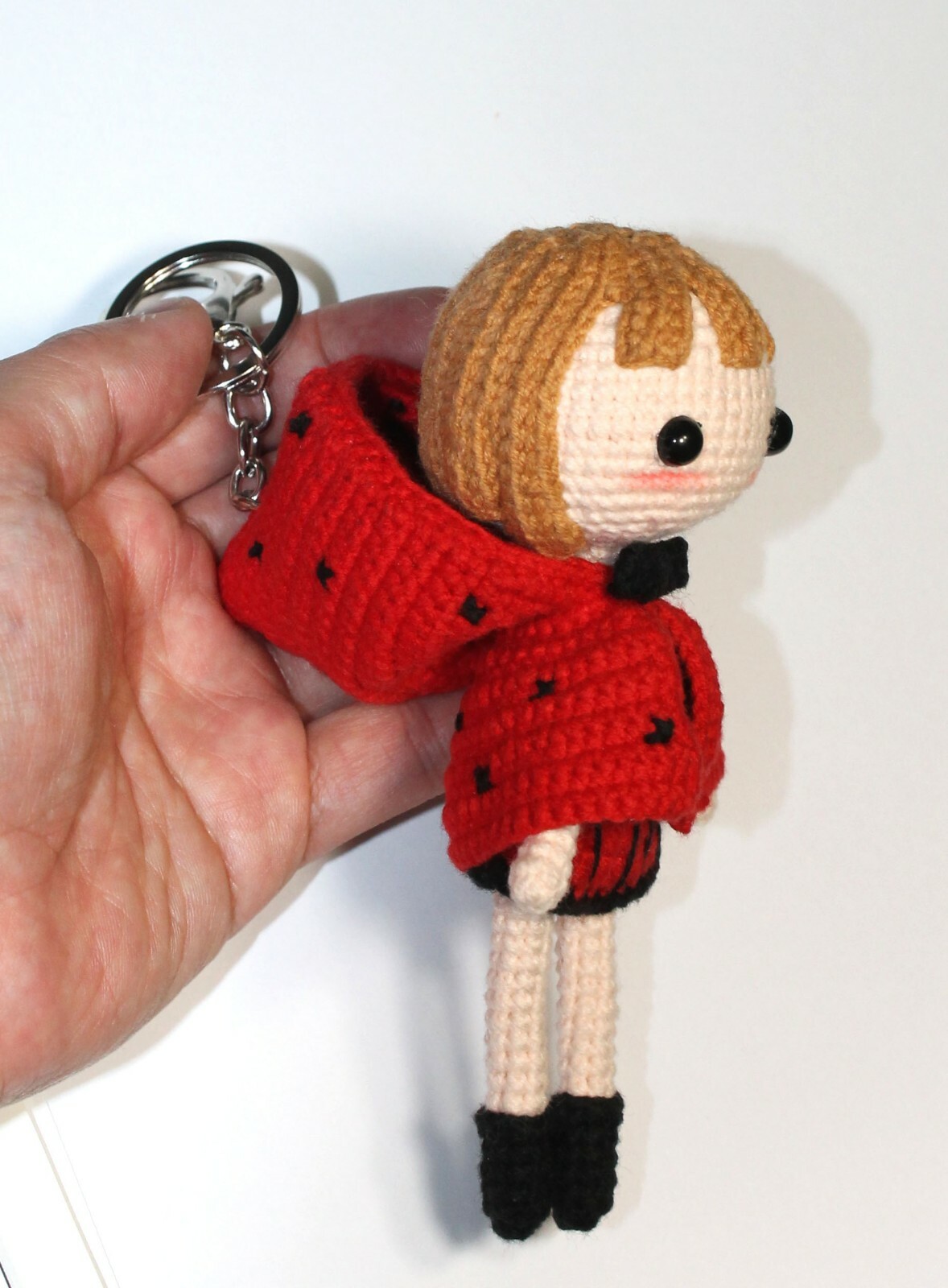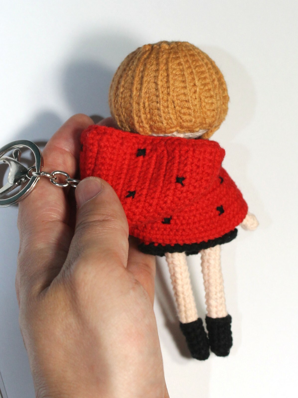 как выглядит 6" Crochet Girl Doll Keychain, String Yarn Toy Figurine Ornament Decoration фото
