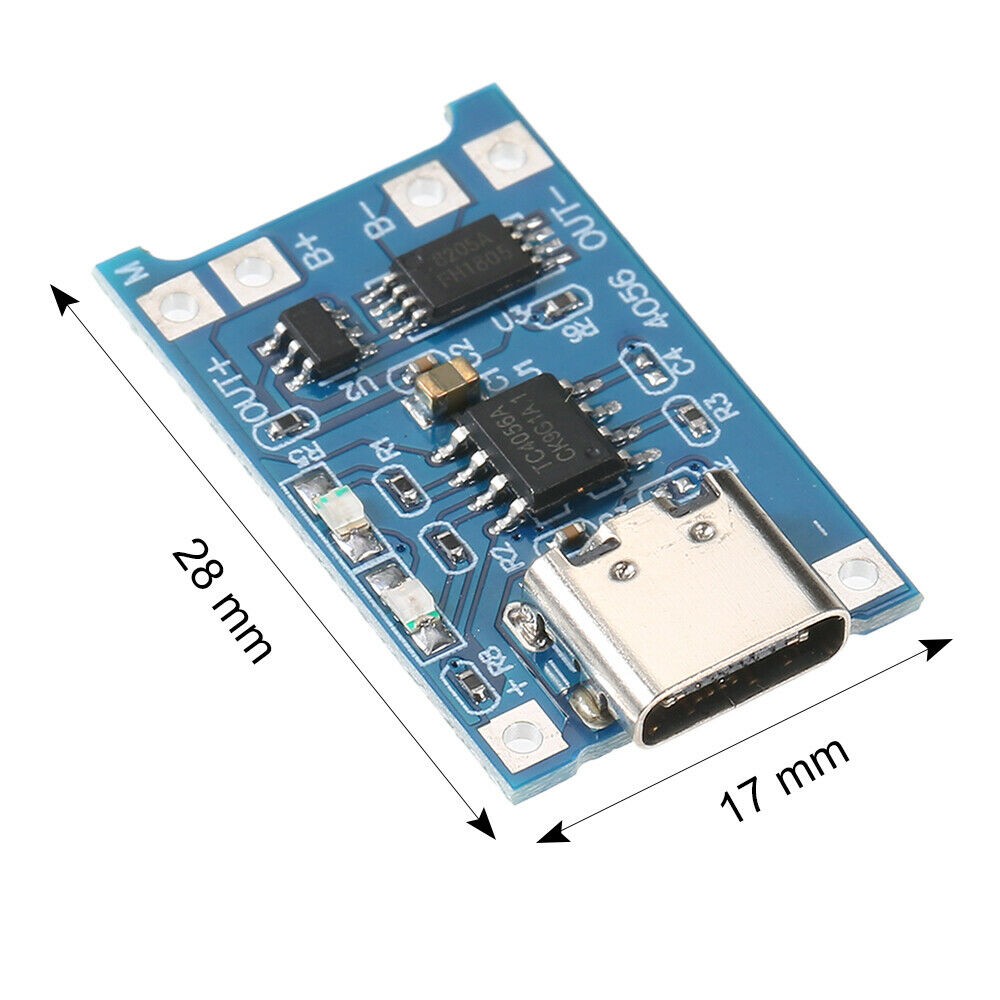 2pcs TP4056 5V 1A USB Type-C 18650 Lithium Battery Charging and Protection Board