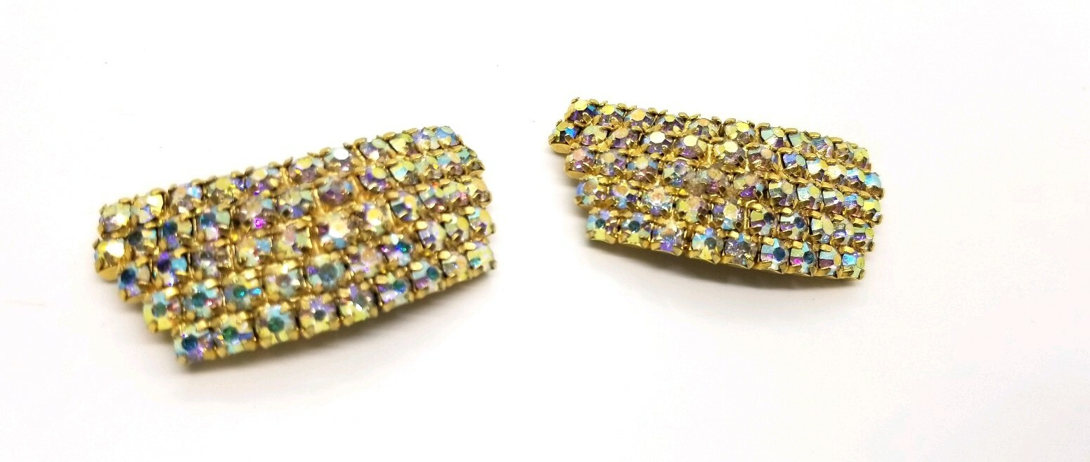 Aurora Borealis Shoe Clips Gold Tone Great Condition