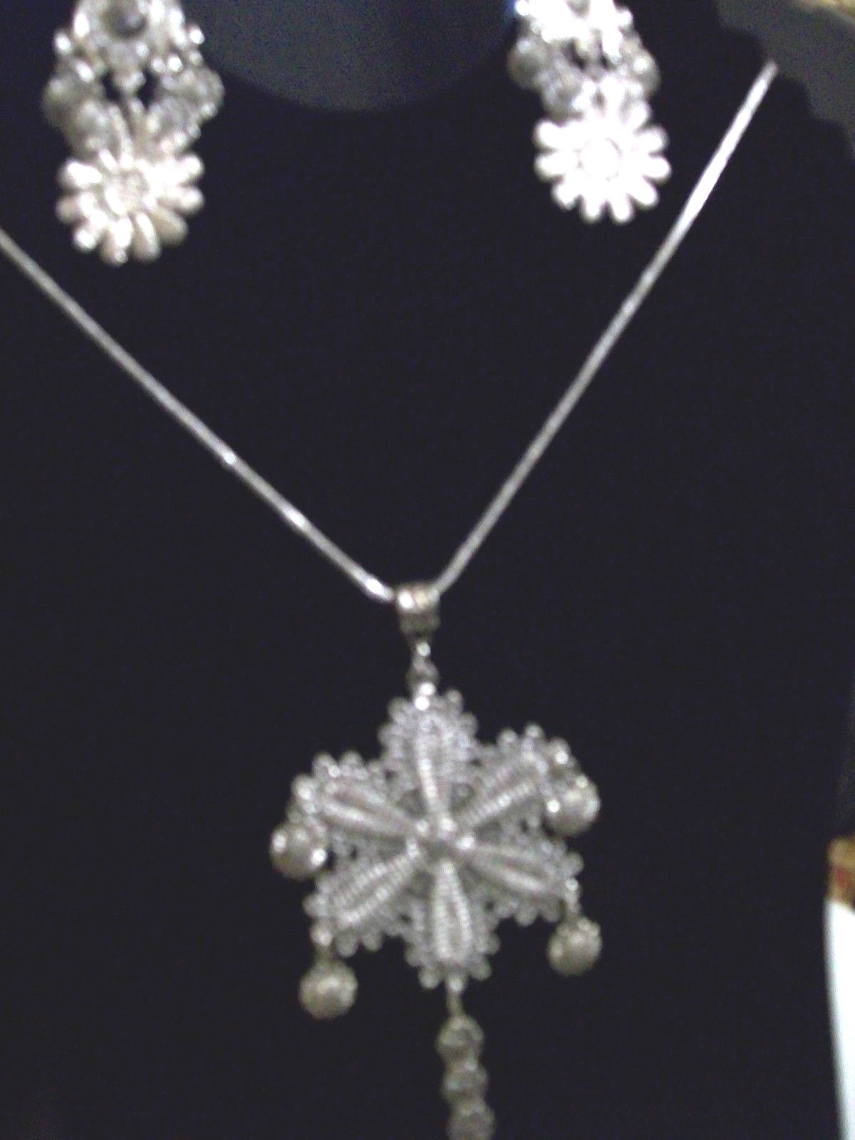 как выглядит Silver sunflower necklace and earring set фото