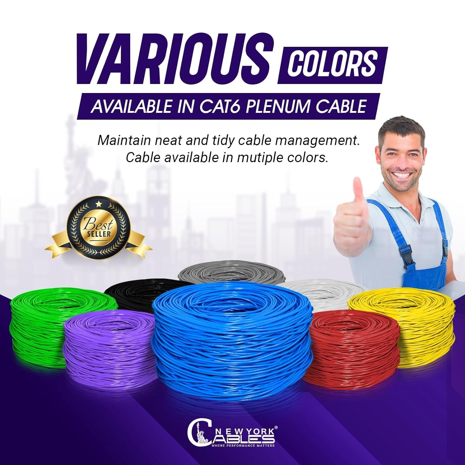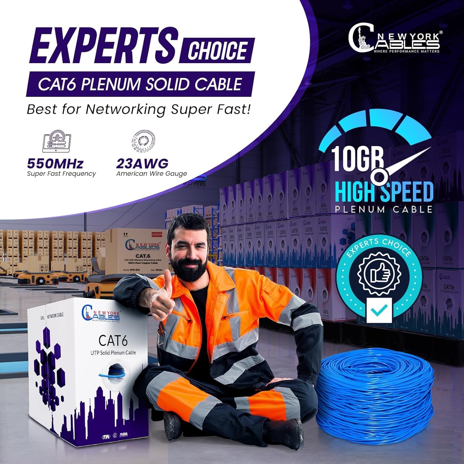 Cat6 Plenum 1000ft CCA UTP ETL Ethernet Cable 23AWG 550MHz Internet Wire Blue