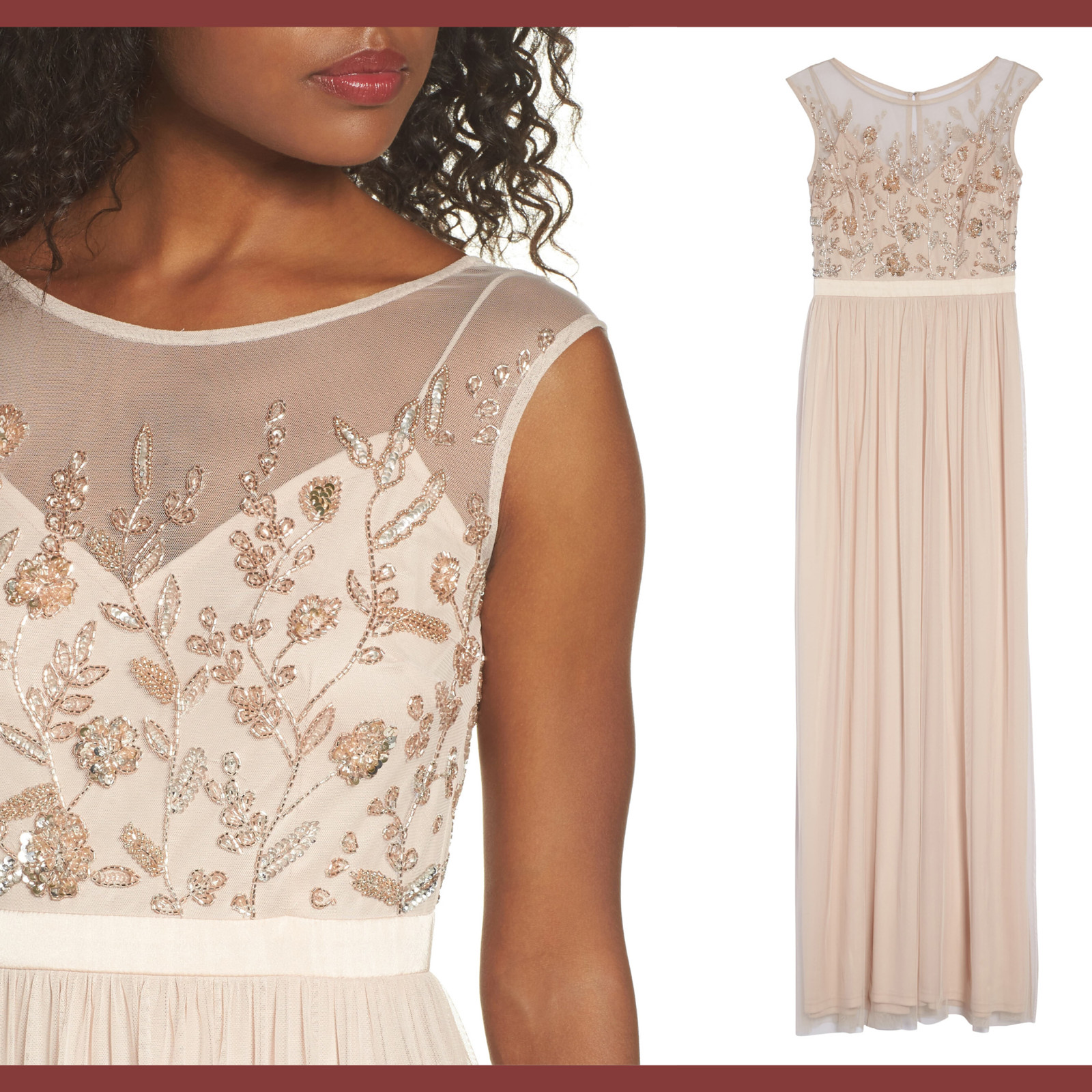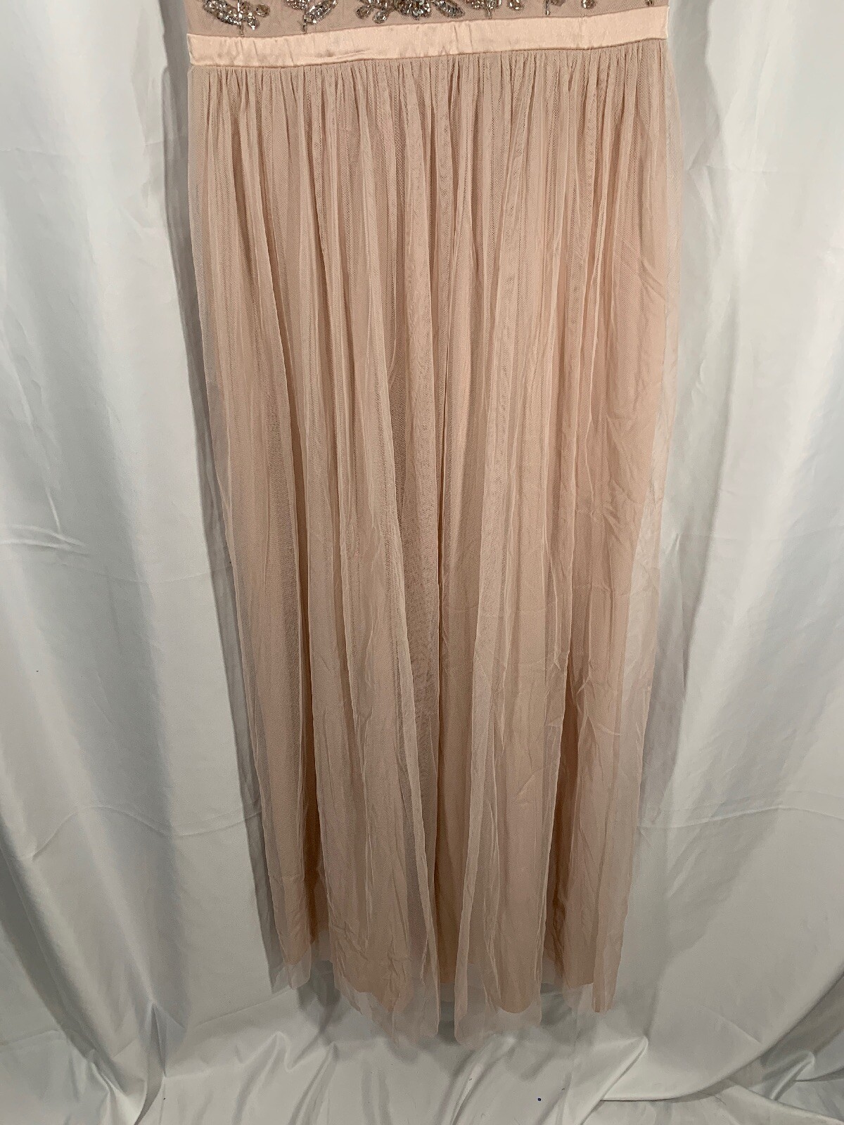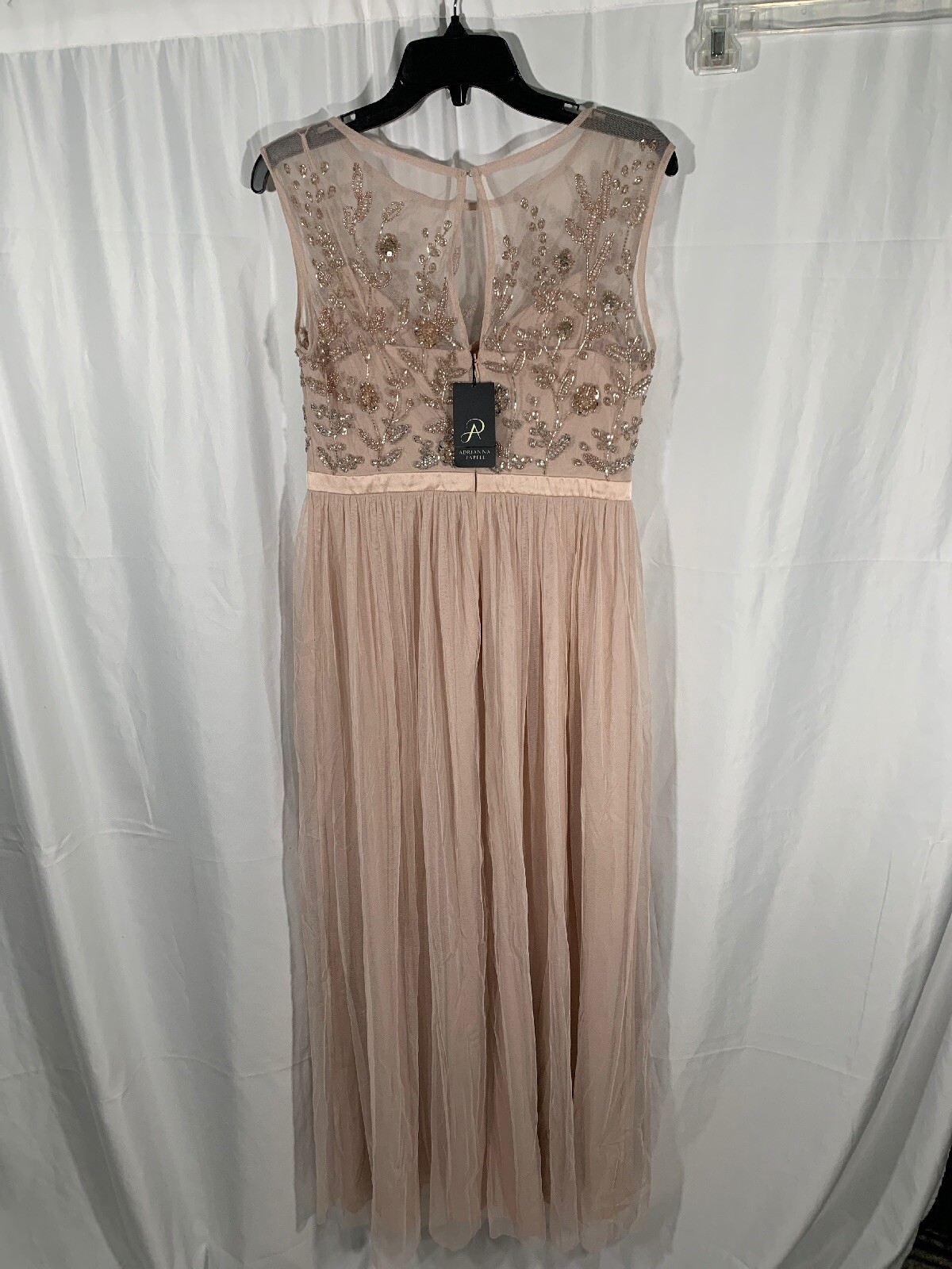как выглядит NEW 249 Adrianna Papell Beaded Mesh Gown in Shell PETITE SZ 8P E666 фото