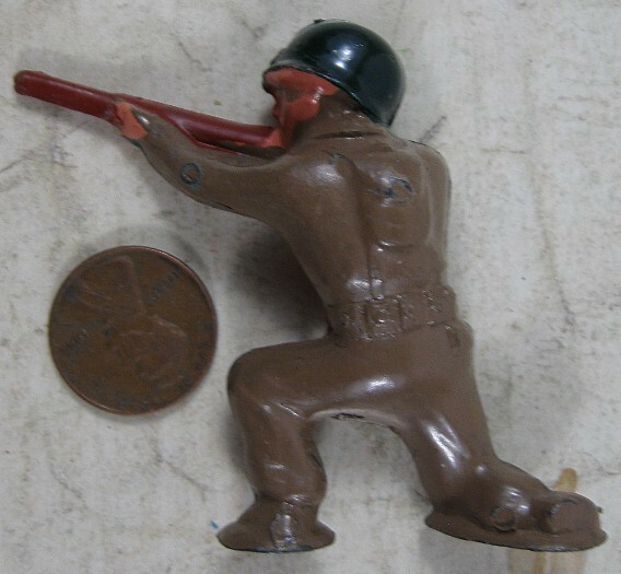 Vintage Barclay Pod Foot Soldier Kneeling Shooting Up Green Helmet