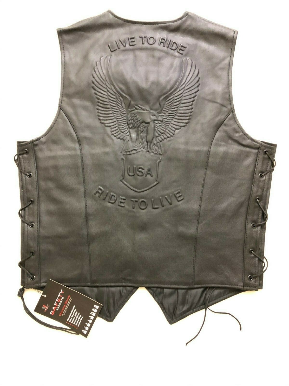 Men s Leather Vest Live To Ride Biker Club Concealed Carry Outlaws