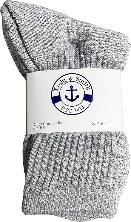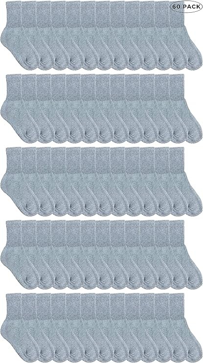 60 Pairs of Yacht Smith Kids Premium Cotton Crew Socks Gray 4-6 - Boys