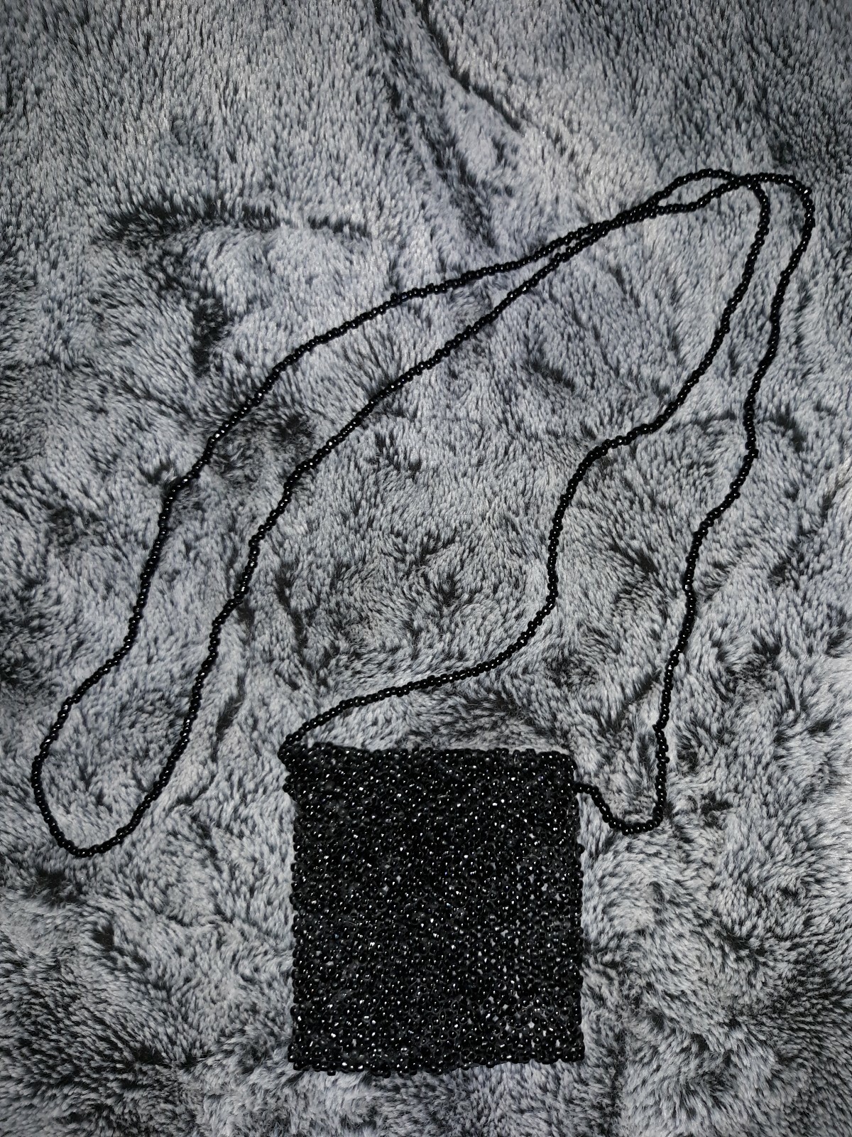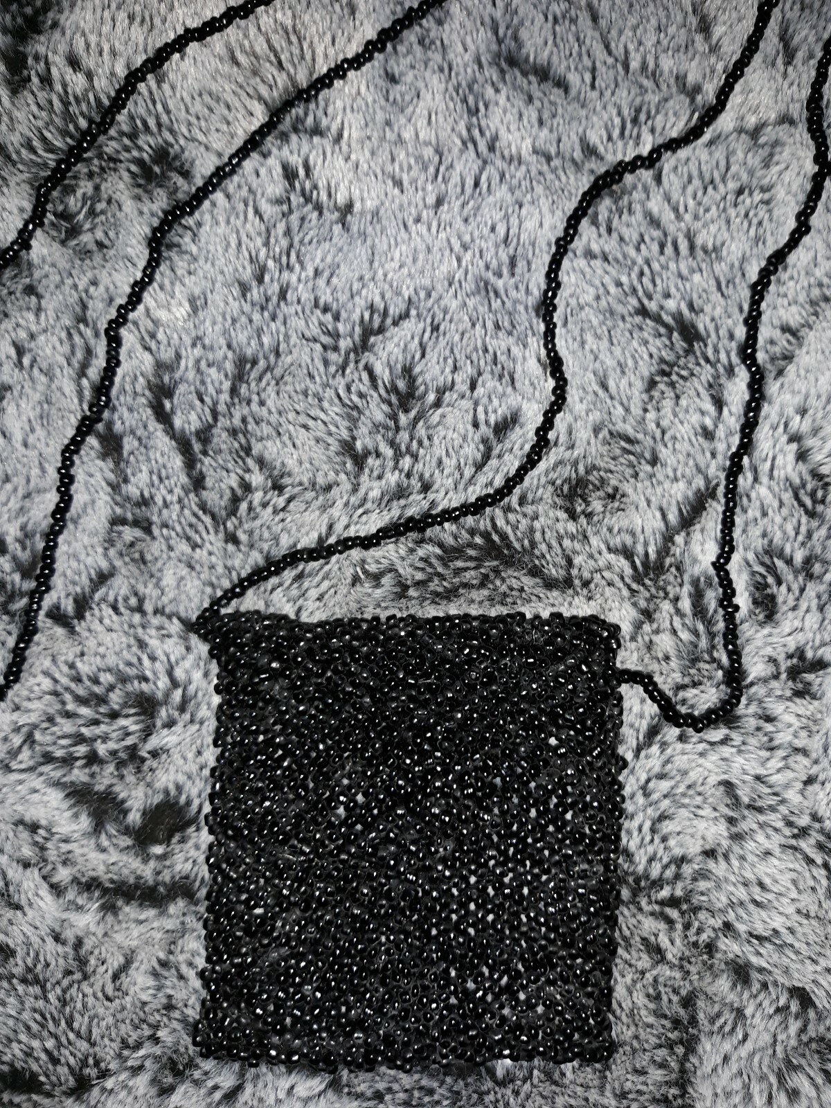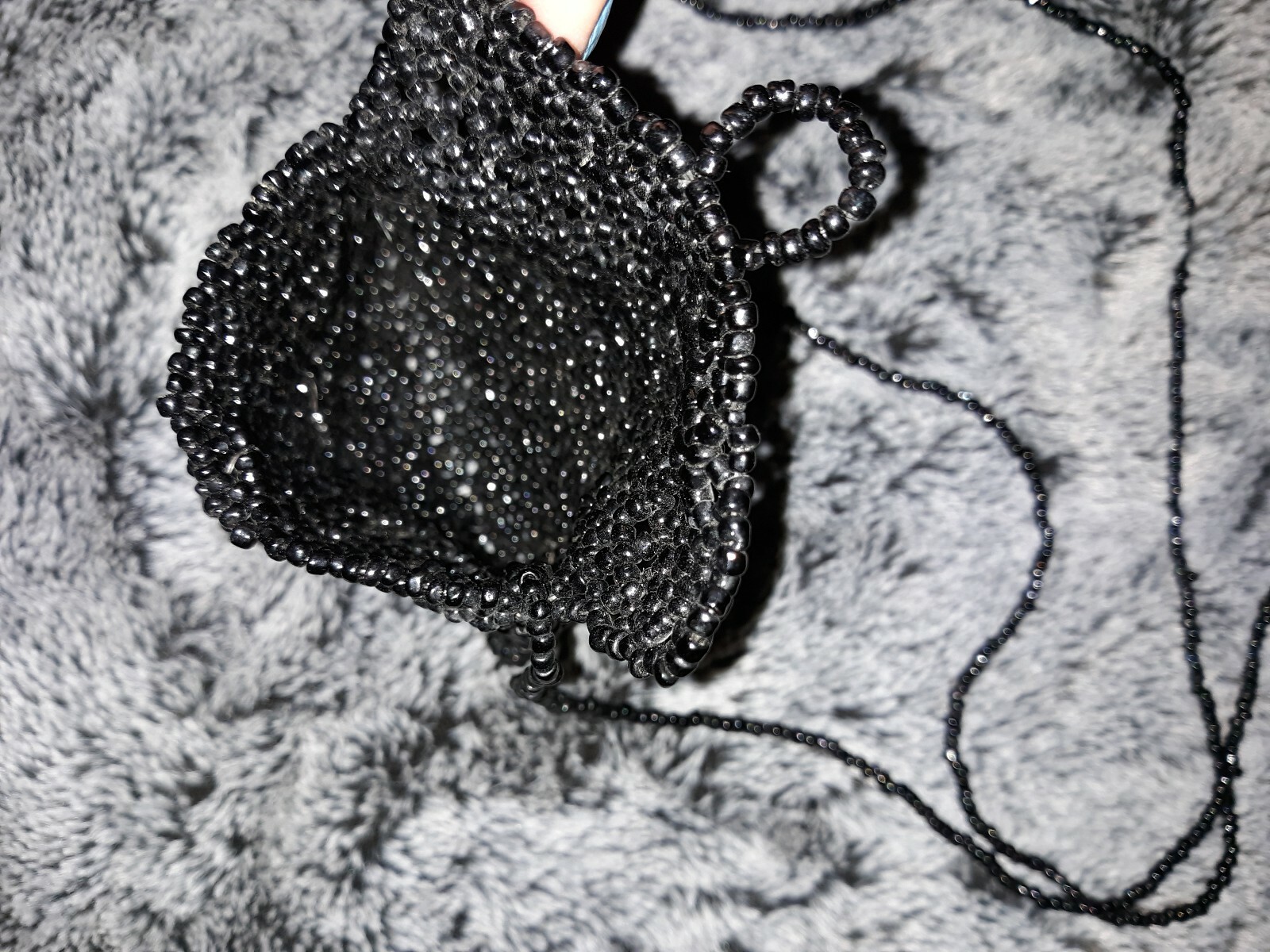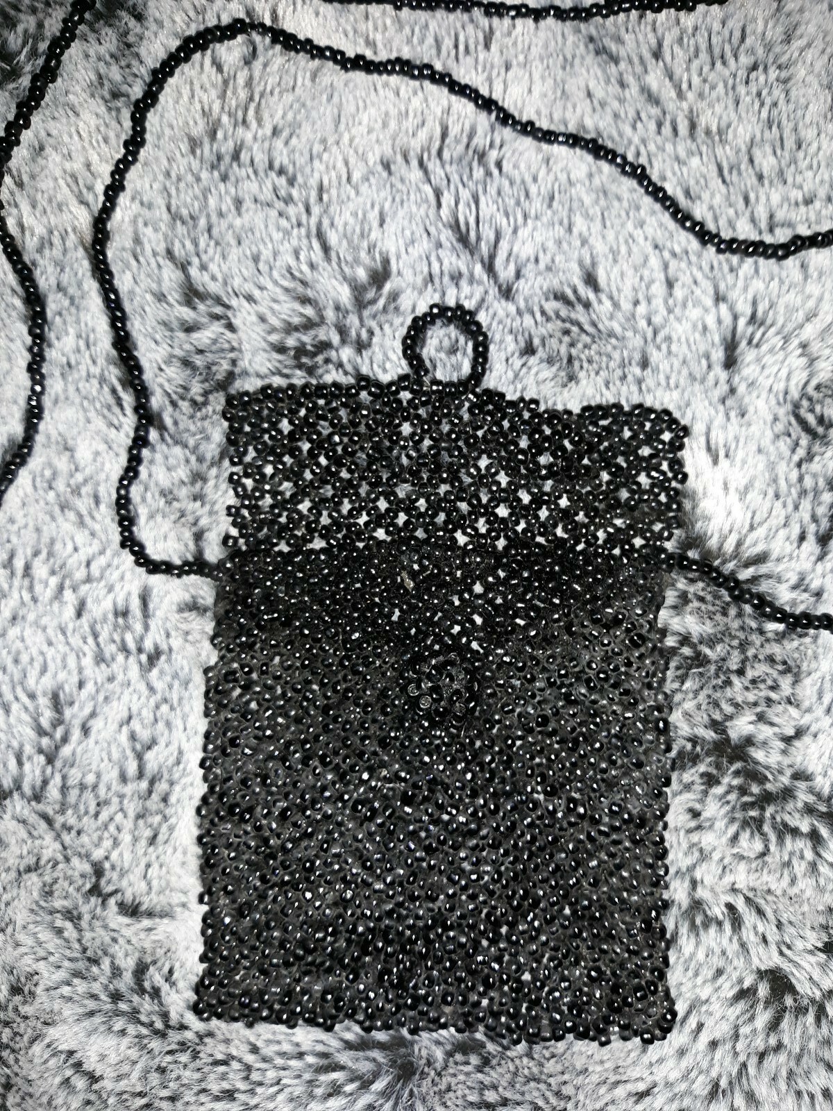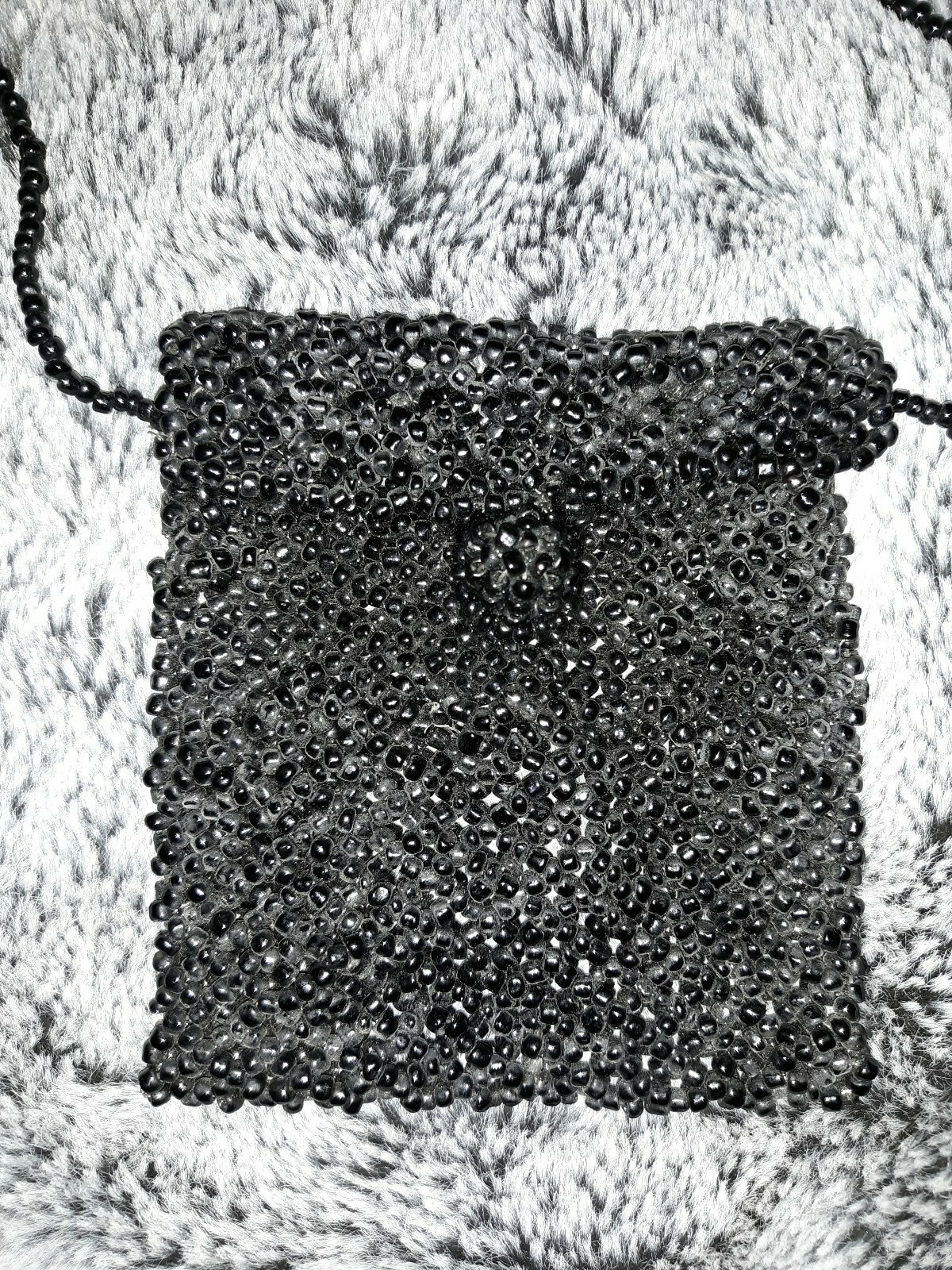 как выглядит Black Beaded vintage Micro Mini handbag Purse фото