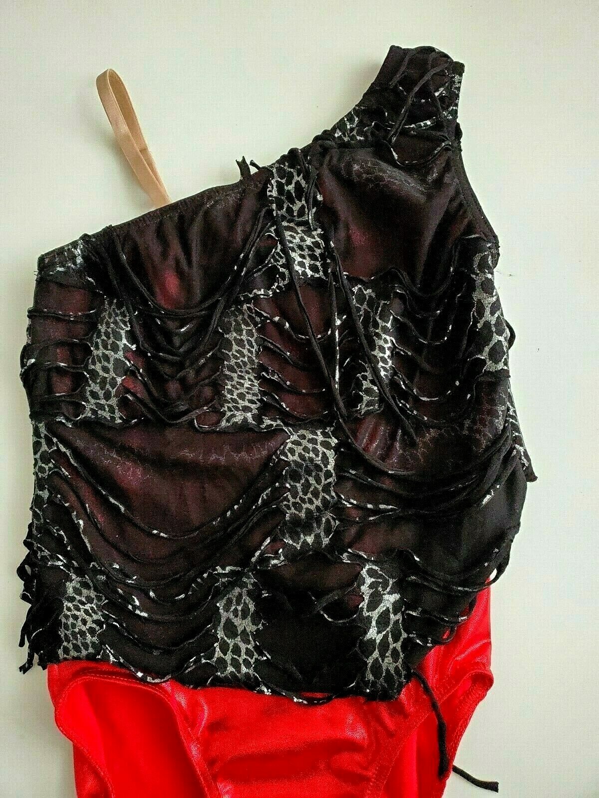 как выглядит Weissman Child Dance Costume Black/Red one Shoulder Leotard Sz M фото