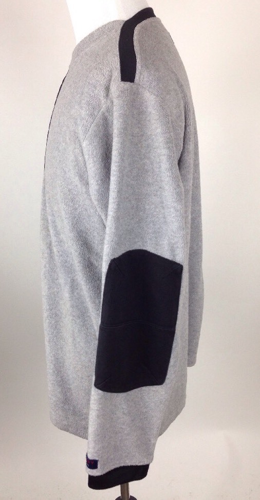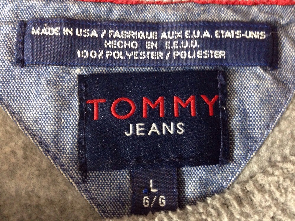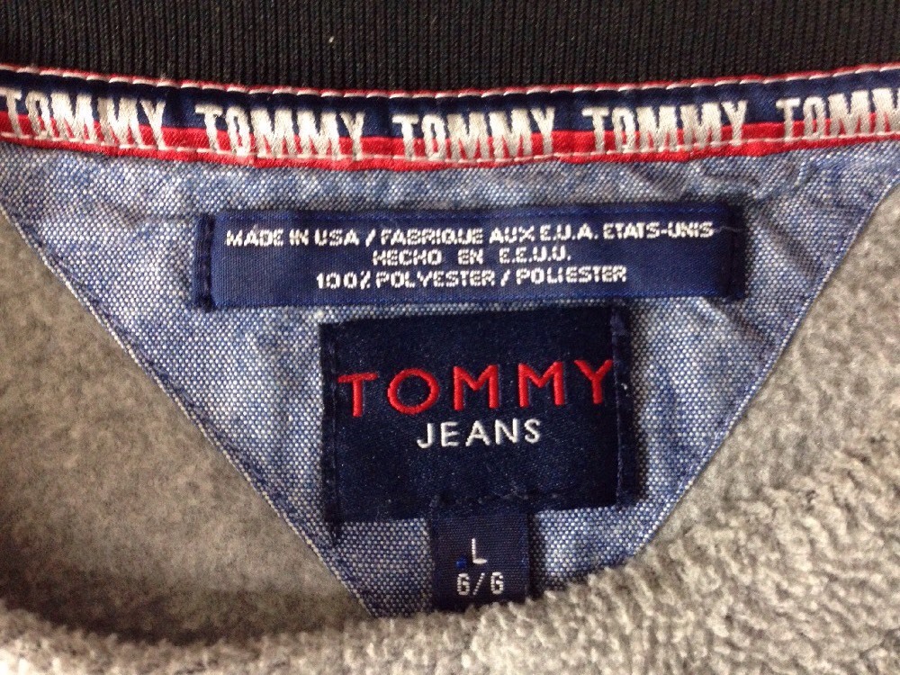 VINTAGE TOMMY JEANS FLEECE PULLOVER SWEATER USA MADE MENS LARGE GRAY ELBOW PATCH