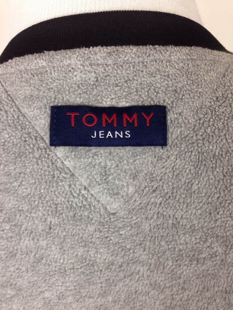 как выглядит VINTAGE TOMMY JEANS FLEECE PULLOVER SWEATER USA MADE MENS LARGE GRAY ELBOW PATCH фото